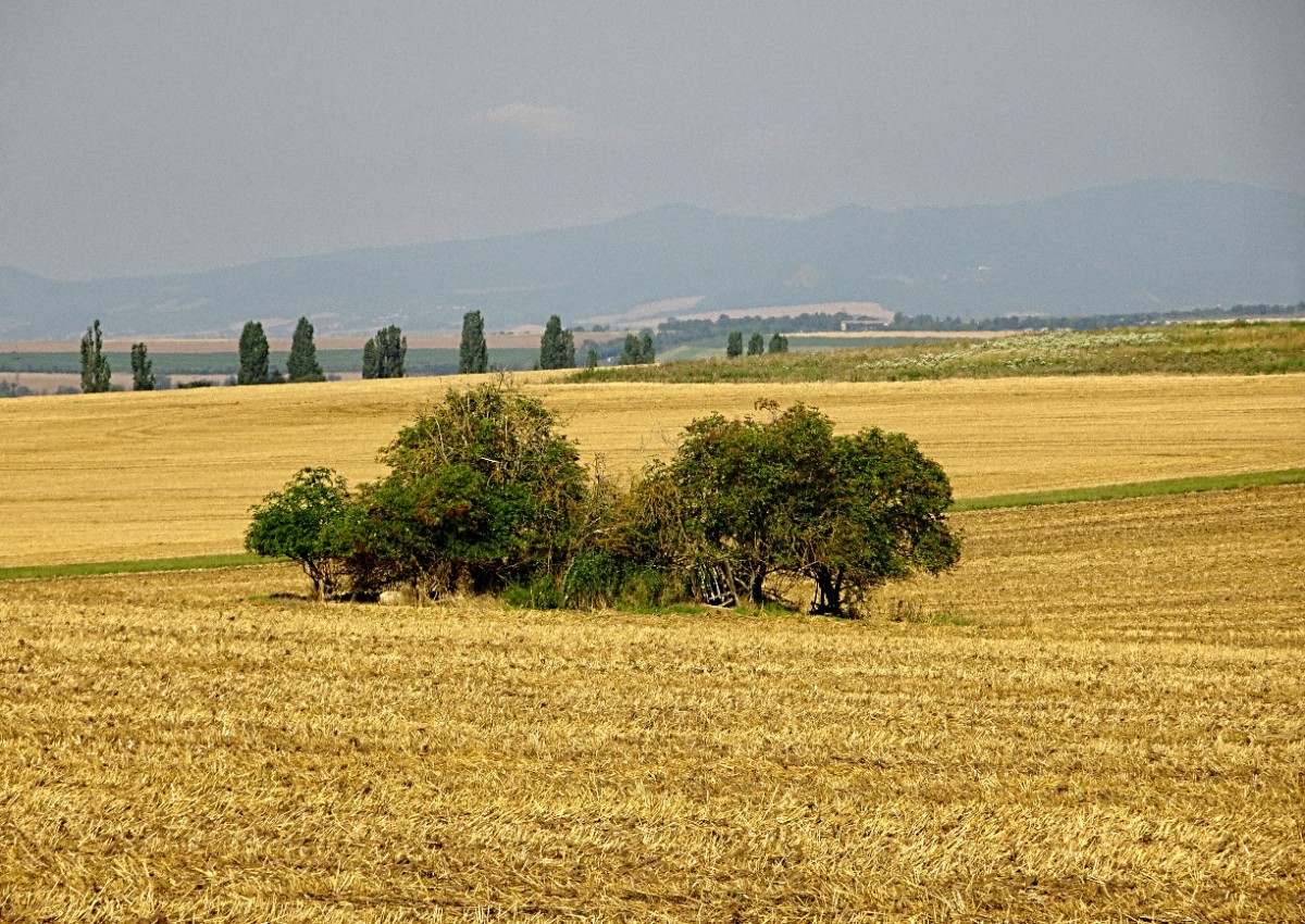 Vykročila jsem nejkratší cestou za město do polí. Ráno trochu sprchlo a cesta je ještě mokrá. Na drátech cvrlikají vlaštovky, na stromě řvou špačci, na střeše čimčarají vrabčáci. Hřivnáč pospává. Vytahuji foťák a už cvakám. Jak málo stačí ke štěstí! A co teprve když vyjdu za poslední domy. Na strništi stojí traktor s valníkem, naloženým balíky slámy. Kolem něj se prohání sám velký Manitou. Je to nakladač, opatřený takovou vidličkou. Napíchne balík, přiveze ho k valníku a jako nic přidá k ostatním. Stojím na cestě a pozoruji ho jako by se tam dělo bůh ví co. Jak nejsem řidič, toužím si manitoua vyzkoušet. Kopečky na obzoru nejsou v oparu prakticky vidět. Srnky na obzoru i vznášející se luňáci jsou nefotitelní, ale krásní. Blažená se na nejvyšším bodu polní cesty rozhlížím kolem sebe a když mi kapsa z batohu ohlásí 3,5 km, řadím zpátečku.