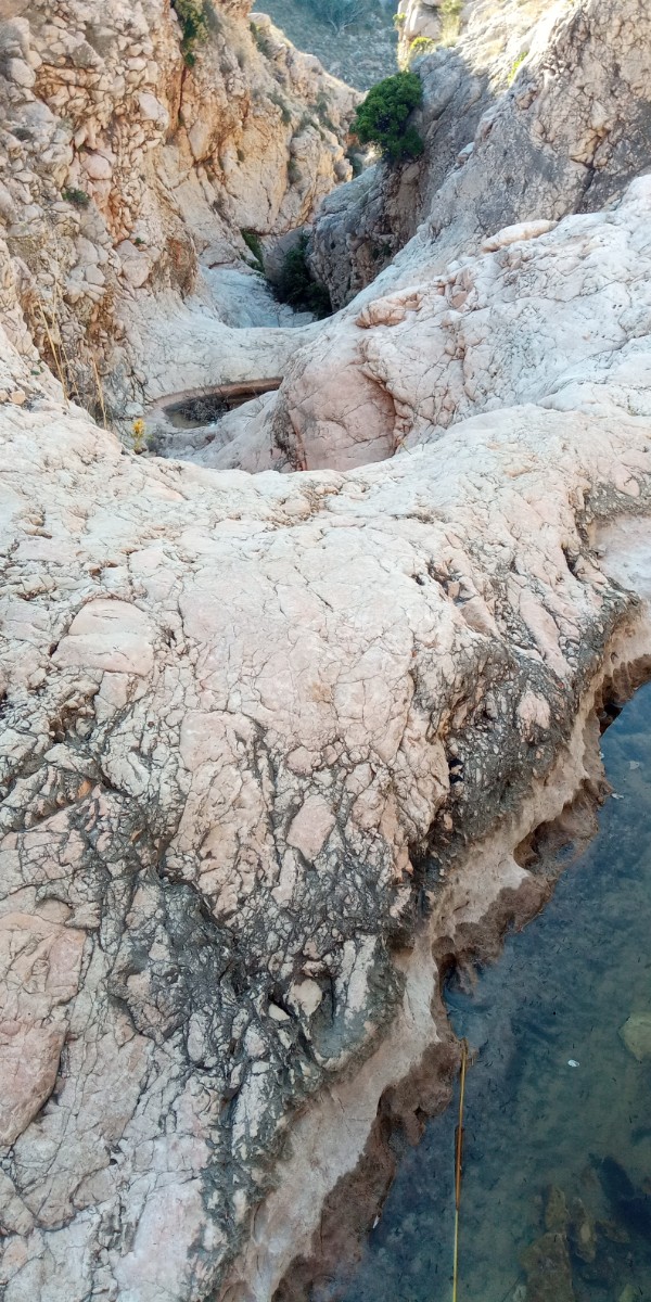 Vstaly jsme trochu dříve, na cestu jsme vyrazily chvilku po sedmé. Předcházelo tomu Evino hledání podprsenky od plavek... Hledala a hledala a nakonec jí došlo, že jí nechala i s ručníkem na pláži. Tak jsme teda vyrazily. Ovšem nebylo to jednoduché, asi taky proto, že to bylo něco jiného než obvykle (nejsem náhodou taky trochu autista?). Přepadlo mě to hned jak jsme si nakoupily v pekárně. A jelikož nebylo takhle po ránu ještě na veřejných záchodcích otevřeno a vracet se k těm na hlavní pláži bylo docela daleko, a taky proto, že potřeba byla skutečně akutní, musela jsem vzít za vděk keříky za kostelíkem. Ale pak už jsme šly. Přes Bunculuku a tam ještě nikdo u vstupu takhle po ránu nebyl a tak jsme krásně prošly zadarmo. No a na Jablanovce si Eva sebrala z pláže ten zapomenutý ručník i s plavkovou podprsenkou. A šly jsme dál na Vrženici. Ještě nebylo horko a tak se nám šlo krásně. Dokonce jsme se ani na Vrženici nevykoupaly, jak to měla Eva v úmyslu. Horko skutečně ještě nebylo a tak se nám do vody zase tak moc nechtělo. A nést si sebou celou cestu mokré boty a ručník, to už vůbec ne. V kaňonu jsme potkali asi tři dvojice, jednu co šla zeshora a druhé dvě co šly stejným směrem jako my jsme pustily před sebe. Byli to mlaďoši a rázovali, aby to měli brzo za sebou. To my jsme si užívaly nejenom tu cestu, ale taky výhledy na moře...