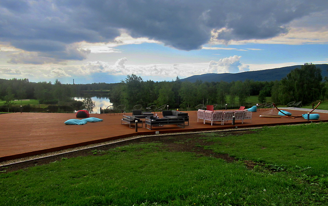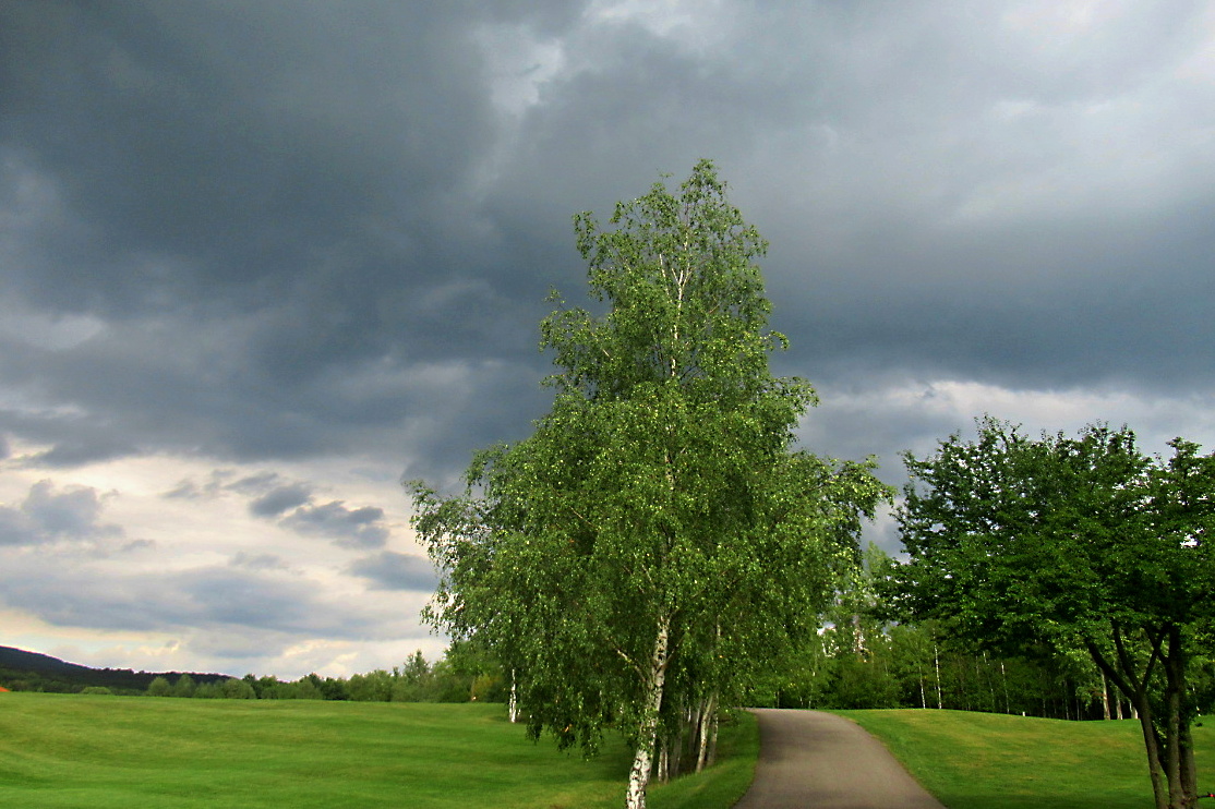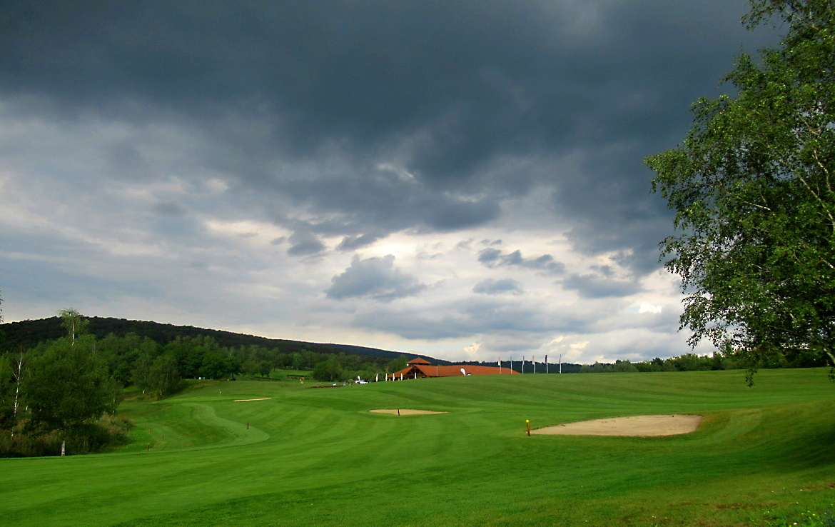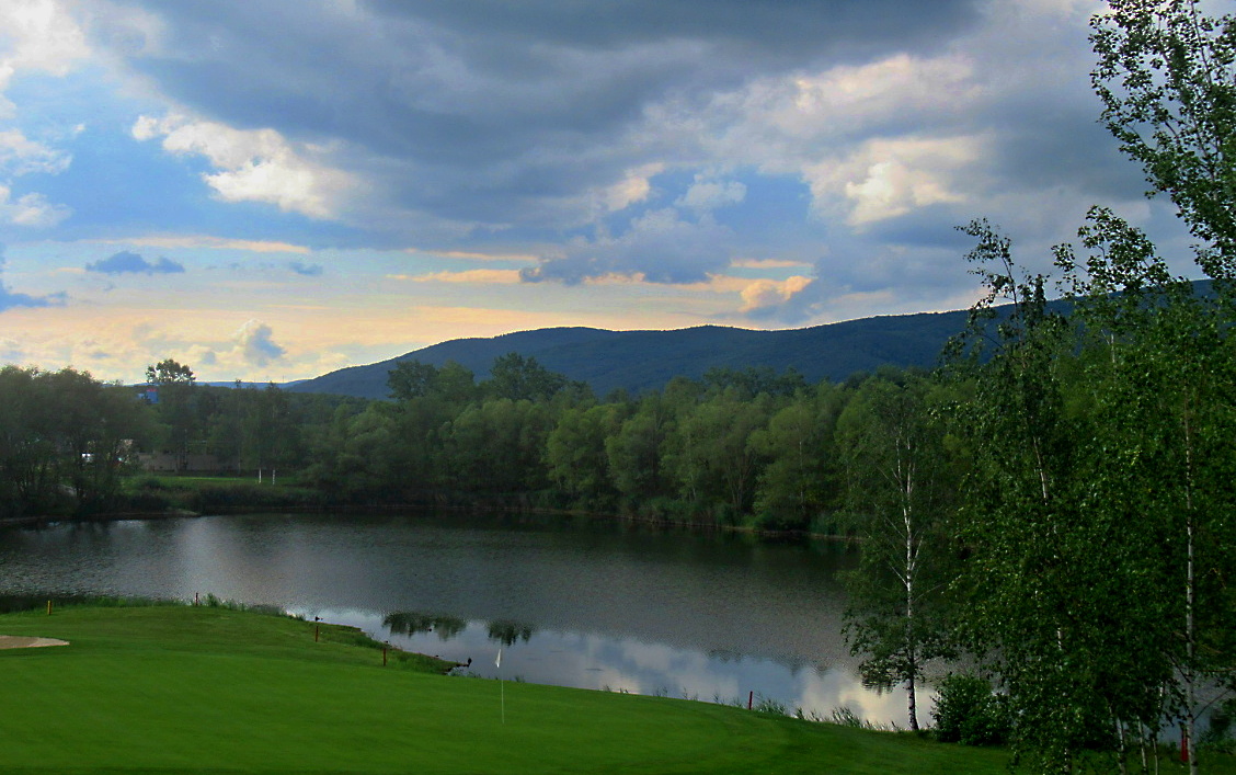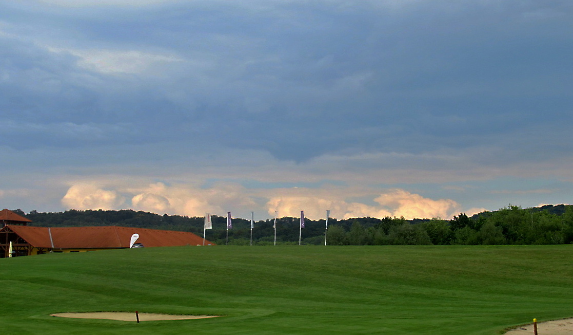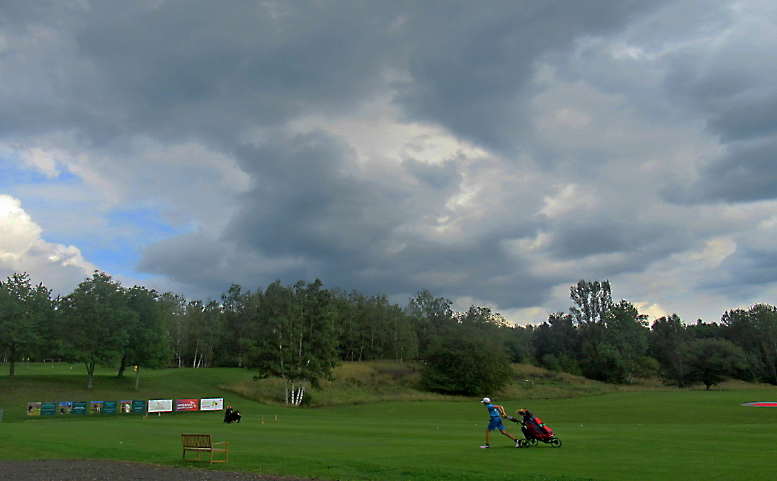 O tomto areálu už jsem také psala víckrát, naposledy to bylo na jaře. Trochu se to tam změnilo, ale naštěstí zůstalo to, že se tam dá chodit na procházky i bez členství v klubu. Bylo znát, že je odpoledne, po greenu se pohybovalo víc a víc fandů tohoto sportu. O golfu se říká, že je to hra snobů, něco na tom určitě bude. My jsme ale potkávali samé slušňáky, kteří pozdravili a musím říct, že to byli i fešáci. Mraky na nebi se sice množily, ale tentokrát to bylo jen na efekt. Matka příroda ví, co lidé jako já pro svou duši potřebují. Celkem jsme ušli 2 km, není to žádný zázrak, ale nám to stačilo.