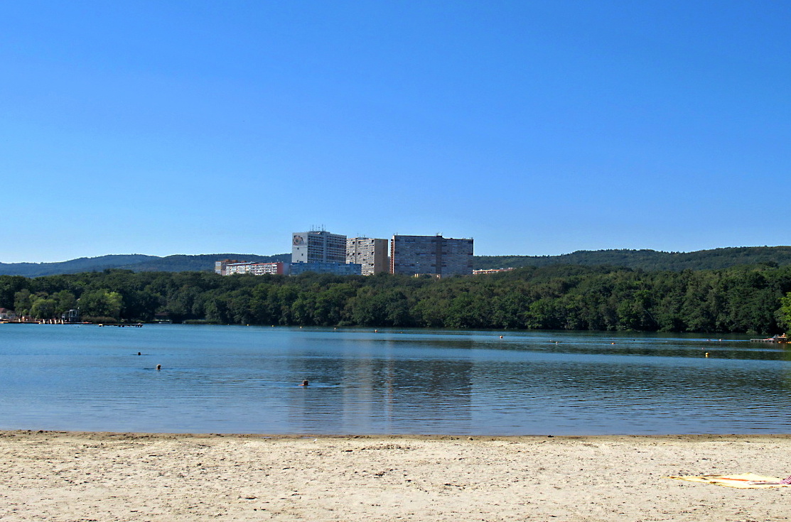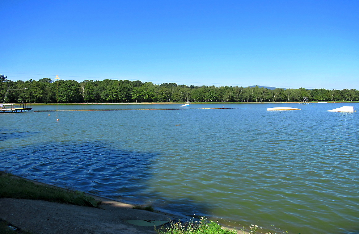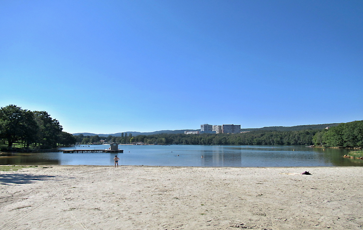 A nyní trochu vody. Další naše návštěva se týkala Kamencového jezera. Pamatuji si, že jsem u něho byla jako dítě na školním výletě. První zmínka sahá do 18. století, kolem r. 1813-1815. Jako přírodní útvar je jedinečné, ojedinělé ve světovém měřítku. Jeho šířka je 240 m, délka 676 m, rozloha 15,98 ha, maximální hloubka 4 m. Bohužel je oplocené, koupání jen za peníze. Musela jsem se dovolit, když jsem chtěla udělat pár fotek. Naproti jezeru se přes silnici nachází ještě jedna vodní plocha. Jedná se o Velký otvický rybník , který je větší než jezero . Má rozlohu 16,95 ha, vznikl v r. 1963-1967, průměrná hloubka je 3,6 m a vypadá moc hezky.