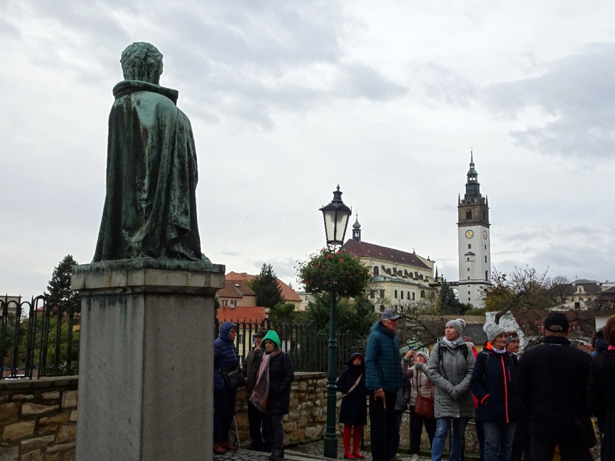 V úterý 14. listopadu v 10 hodin se u horní kašny na litoměřickém náměstí sešlo asi 30 seniorů a vydali jsme se v doprovodu sympatické paní průvodkyně Zdeny Redererové na vycházku. Obdélníkové náměstí královského města Litoměřice patří k nejkrásnějším, které znám. Všechny domy jsou krásně opravené a lešení už zmizelo i z budovy historické radnice, ve které je dnes umístěno oblastní muzeum. Rovněž typický zelený kalich na střeše nynějšího radnice, sloužící jako vyhlídková věž, je po opravě v celé kráse. Řada domů je v přízemí propojena podloubím, chránícím před nepřízní počasí. Celý hlouček seniorů za vyprávění paní průvodkyně obešel náměstí a zastavil se u muzea. Už sama o sobě překrásná renesanční budova je ozdobena zajímavostmi - sochou Rolanda, pranýřem a také loktem, historickou mírou, používanou v dobách minulých při trzích. O Rolandovi jsme se dověděli zajímavou pověst a loket byl na místě přeměřen. Jestlipak víte, kolik měří jeden loket? Prošli jsme se po hradbách - parkánech a postáli u sochy Karla Hynka Máchy, stojící u divadla Karla Hynka Máchy. I na verše z Máje došlo. Po Máchových schodech jsme pak sešli do Máchovy ulice s domem, v němž v Litoměřicích Karel Hynek Mácha krátce žil a bohužel i zemřel.