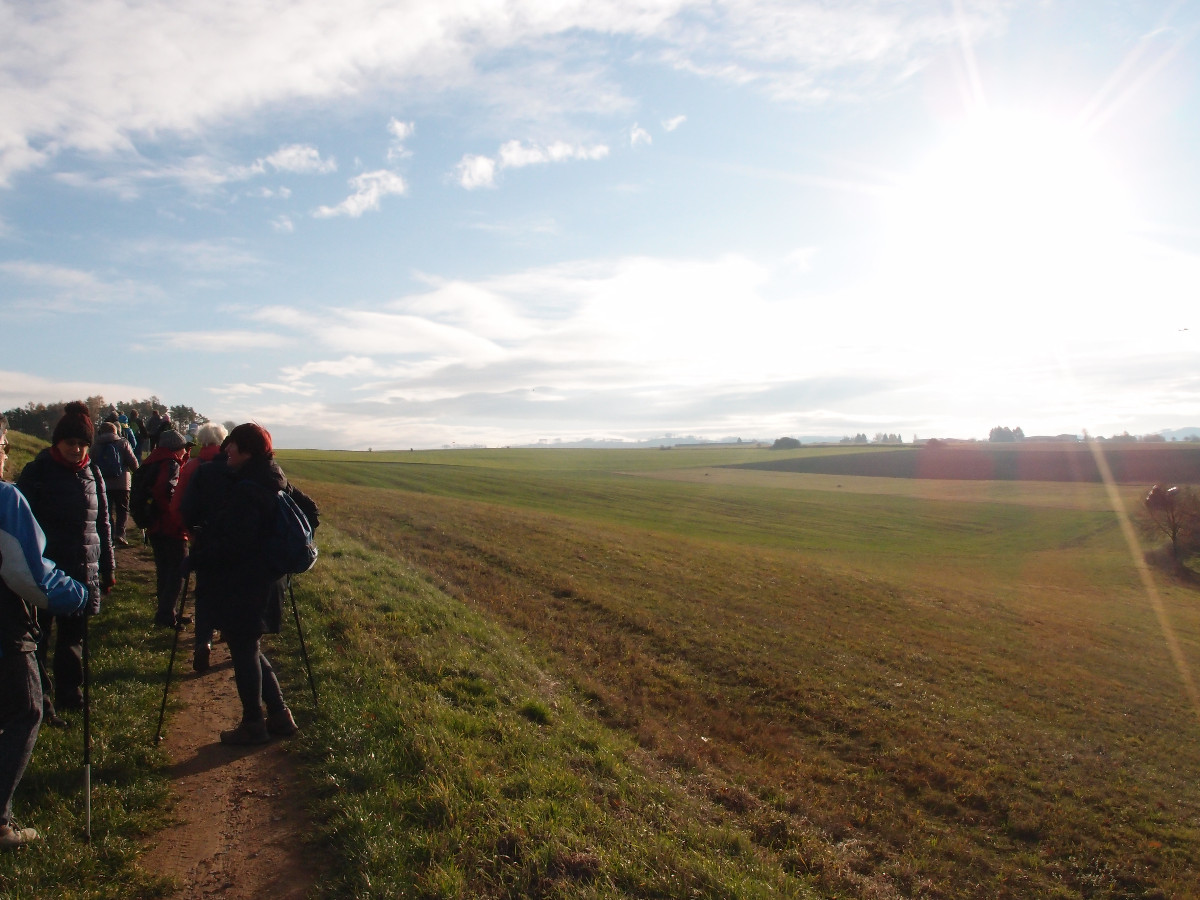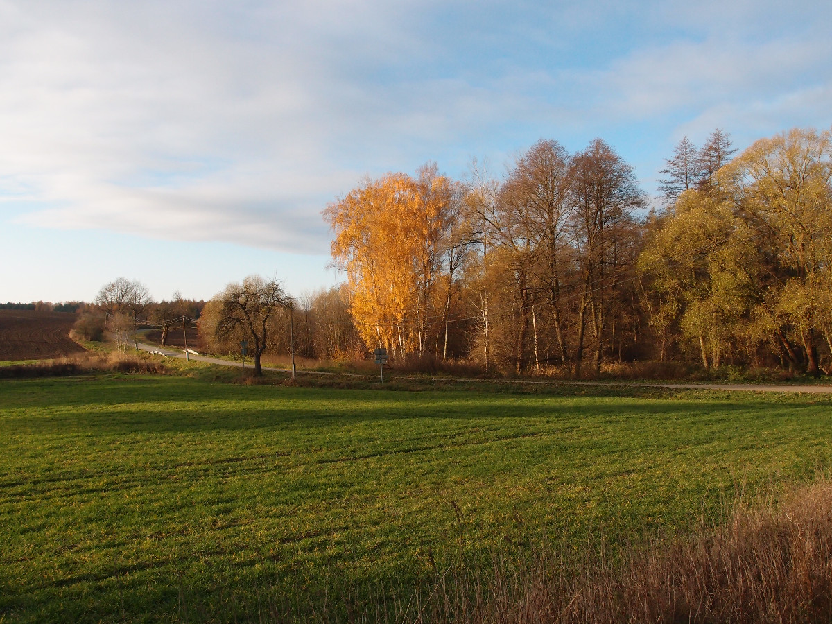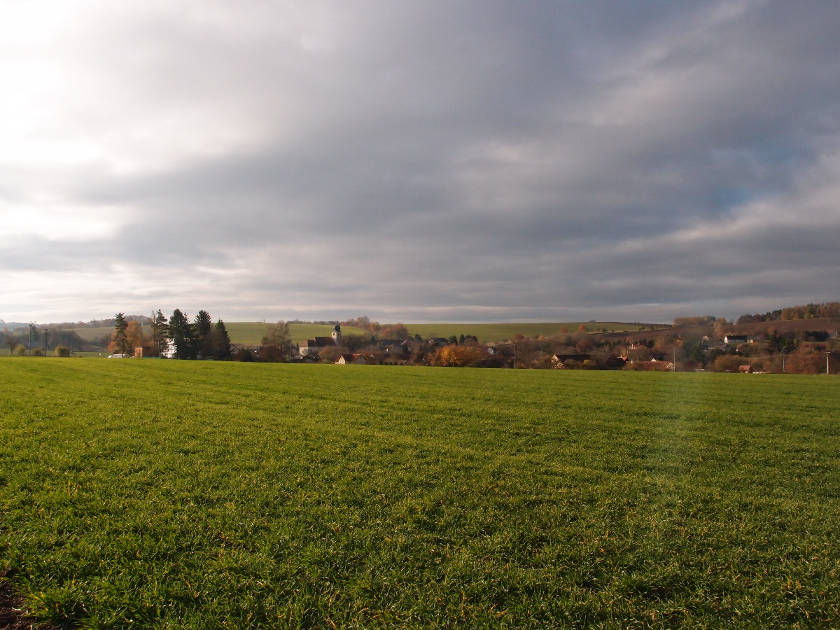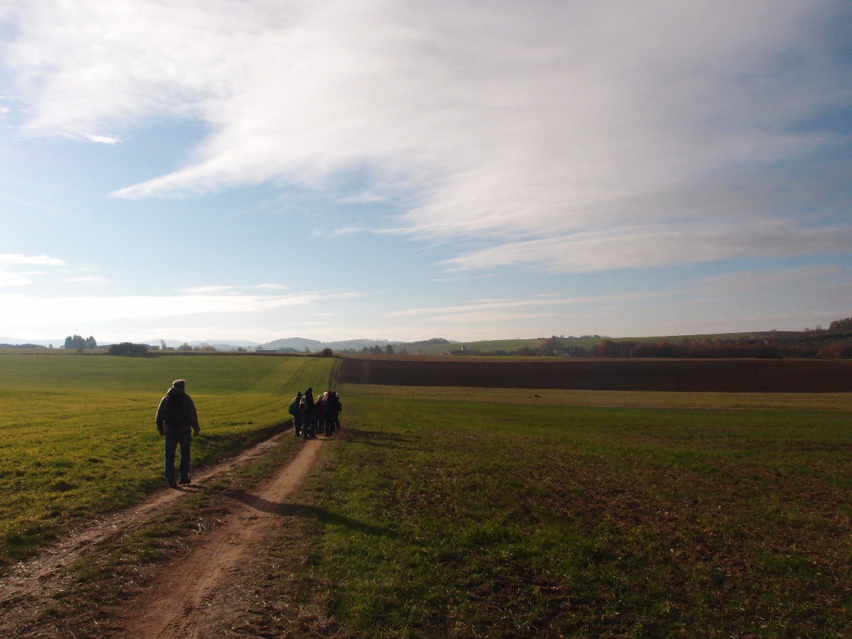 Jenom po okraji jsme šli kolem opuštěných, upravených a ostříhaných trávníků a ani ve vesnici jsme nepotkali živáčka. Mezi poli a cestami jsme stoupali pořád do mírného kopce a vítr nám neustále fičel do tváří. Ledový vítr neustále prověřoval, jak jsme se na dnešní den oblékli. Čepice, kulichy, několik vrstev oblečení a rukavice, byl nezbytný módní doplněk pro čtvrteční vycházku.
