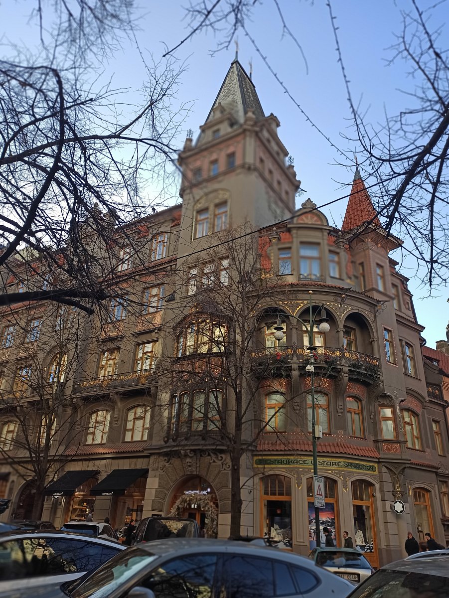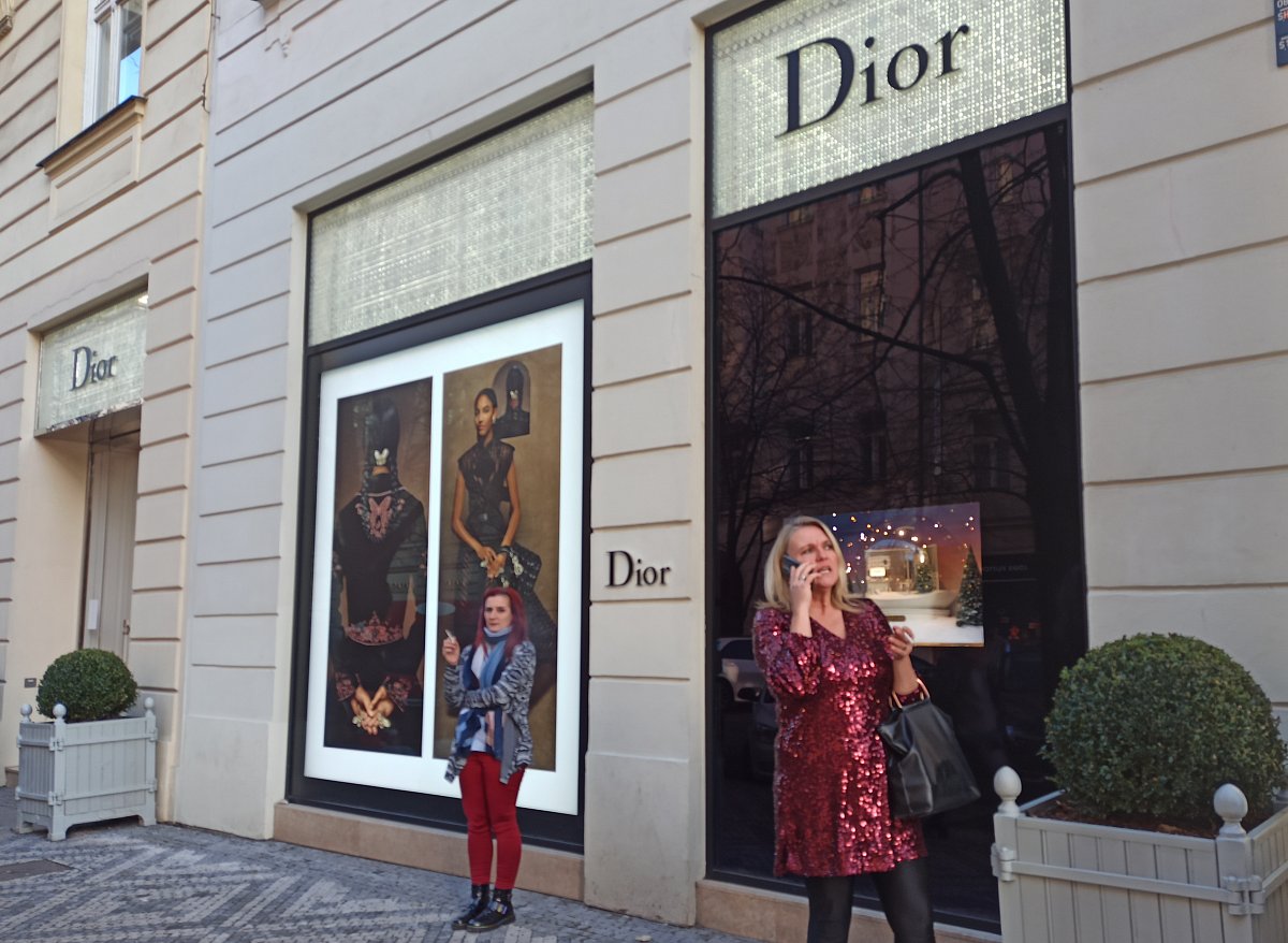 Z nádraží jsme si to namířili na Václavské náměstí, kde jsme mezi stovkami turistů z celého širokého světa uviděli "stepovat" před jedním butikem naši kamarádku z i60 - Soňu, zatímco její rodinka nakupovala vánoční dárky. Po vzájemných vřelých objetích jsme my dva pokračovali na Staroměstské náměstí, kde se mělo konat naše setkání. Do jeho začátku zbývala ještě hodinka, kterou jsme chtěli využít k prohlídce pražských památek. Tentokrát padl los na Pařížskou ulici.