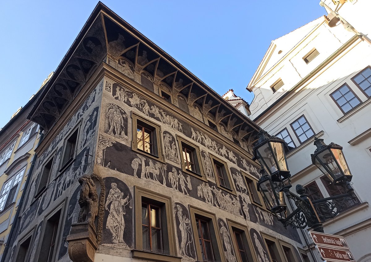 Když jsme si prošli celou ulici, prohlédli krásné fasády domů a luxusní zboží ve výkladních skříních, vrátili jsme se zpět na Staroměstské náměstí a zamířili jsme okolo orloje do krásného renesančního měšťanského domu U Minuty, kde jsme se ve druhém poschodí potkali s našimi přáteli ze všech koutů naší republiky.
