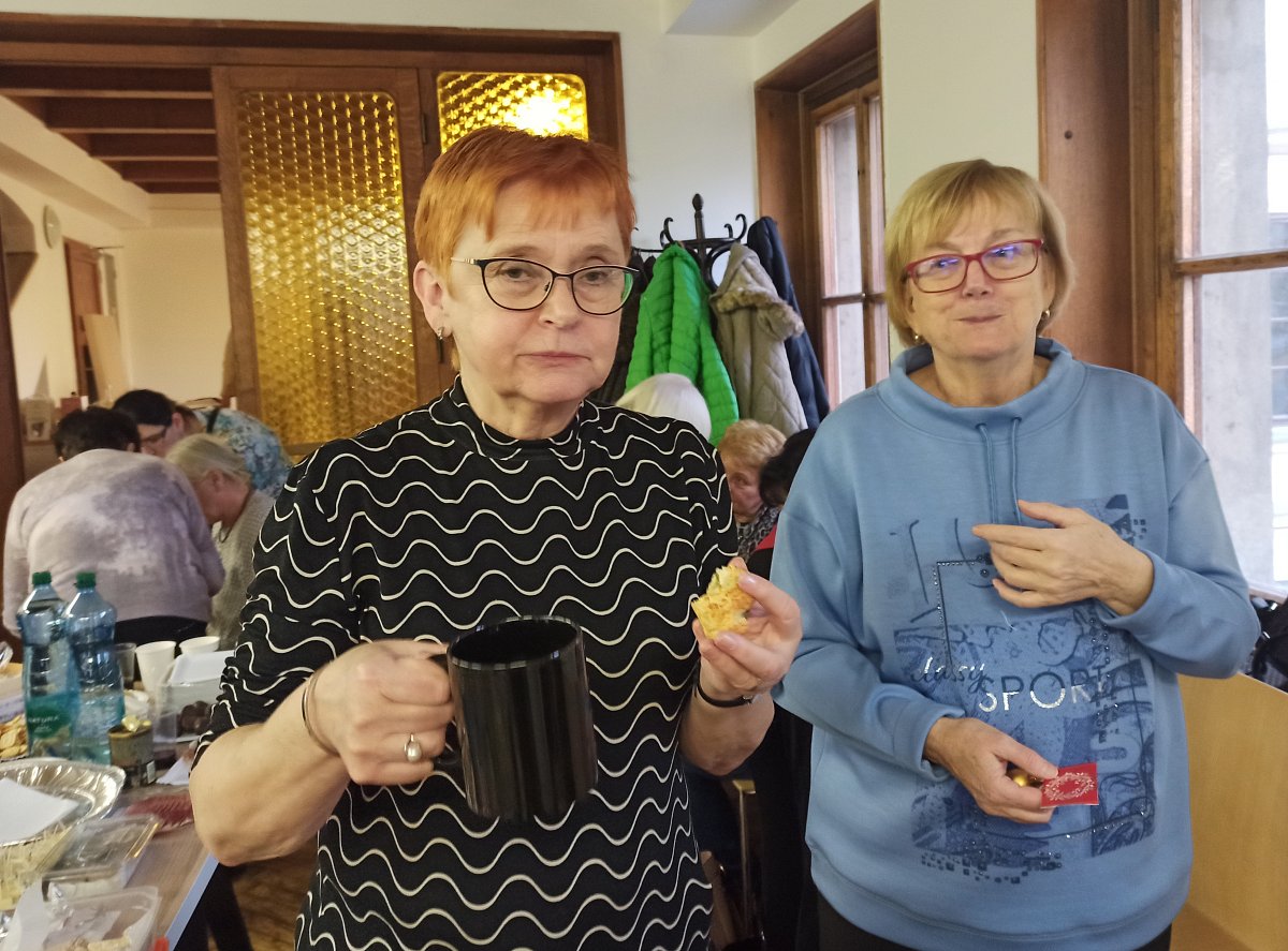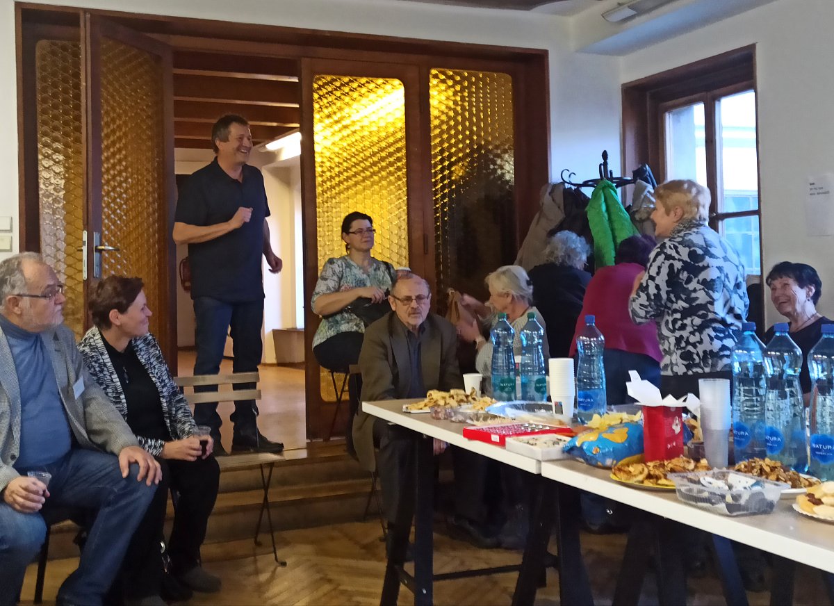Atmosféra byla úžasná. Napřed nás přívítal Honza Raška a připili jsme si jeho výborou ořechovkou. Následně nám představil svoje knihy Olda Čepelka. A potom už nastalo všeobecné veselí. Bylo tam jako v úle. Stůl se prohýbal pod sladkými i slanými dobrotami, které jsme zapíjeli vínem všech barev. Zkrátka, nic nám tam nechybělo.