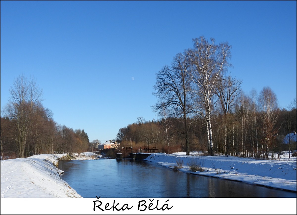Po hodině se vracím domů a po kávové chvilce z křesla od televize zvedám moji drahou polovičku a vyrážíme spolu na poněkud delší procházku. Venku je krásně a zimní sluníčko nám hřeje tváře, po chvíli sundáváme rukavice a vyšlapujeme opatrně po zmrzlé klouzavé cyklostezce a míříme do Hradce – Nové Vsi. Cílem je most u Ambrožů.