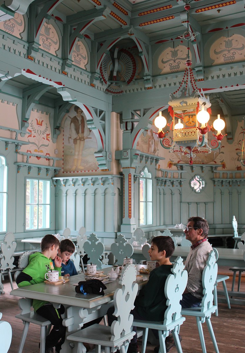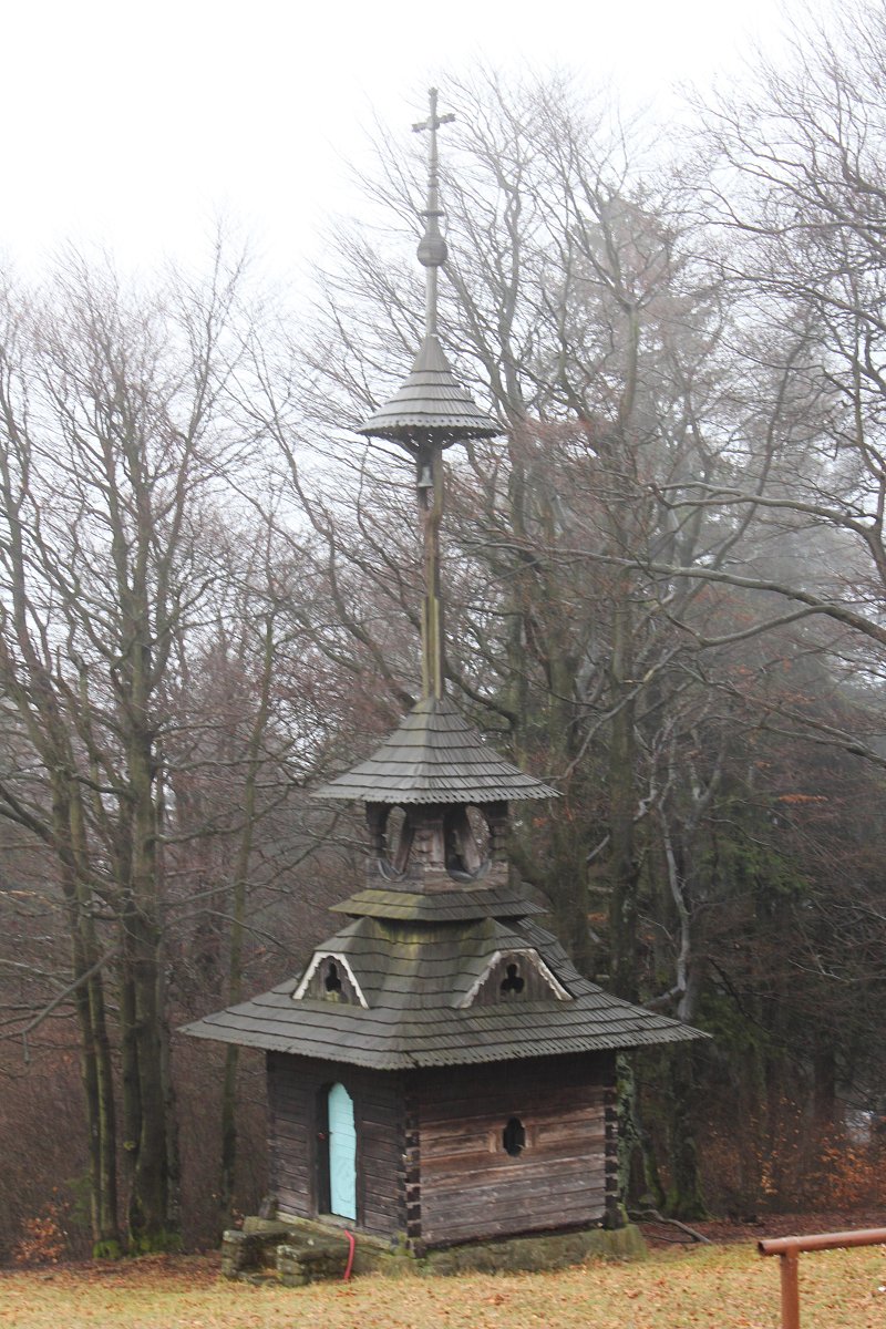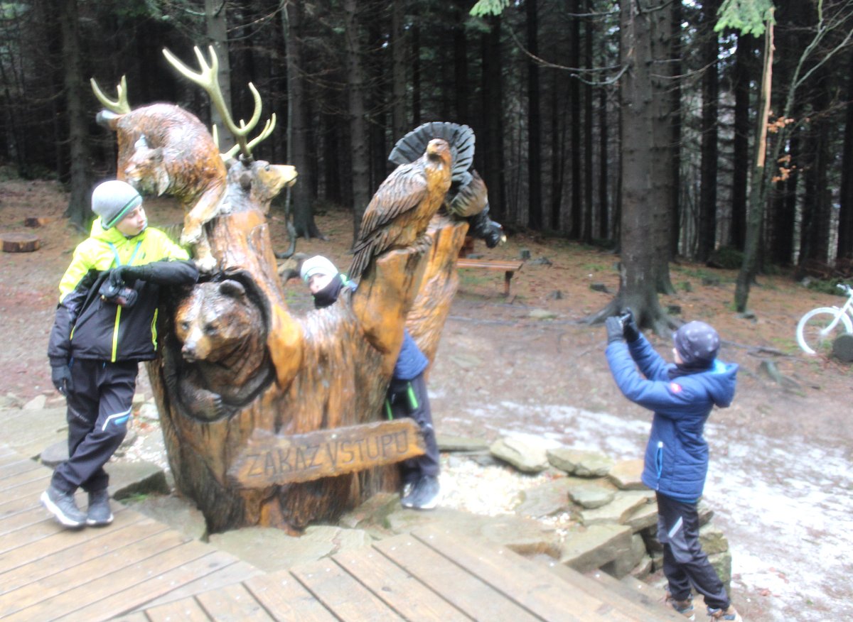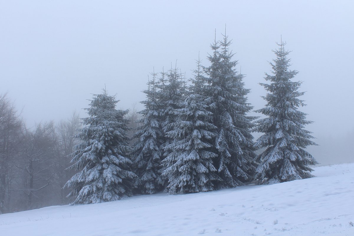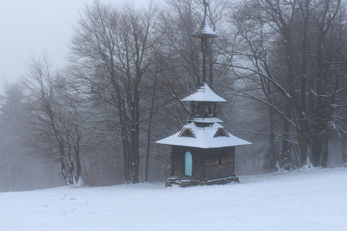 Na druhý den naplánovala babička cestu na Radhošť. Říkala, že se uskuteční za každého počasí, i kdyby trakaře padaly. Nepadaly, ale do rána napadlo asi 8 cm krásného bílého sněhu. Když jsme si připravovali snídani, podařilo se nám vyhodit v celé chatě pojistky teplometem, kterých tam bylo plno. Náš šikovný děda je ale, podle telefonických instrukcí paní majitelky, znovu nahodil. Potom už jsme mohli vyrazit na náš naplánovaný výlet. Před námi nebyly ve sněhu žádné stopy, jen vyjeté koleje od sněhové rolby. Po cestě nás předběhli nějací turisté, my jsme nikam nepospíchali. Vyfotili jsme se na vyhlídce a u sochy Radegasta, a po 4 km jsme byli u hotelu na Radhošťi. Babička s dědou chtěli jít ještě za Cyrilem a Metodějem ke kostelu, ale jak už to v demokratickém světě chodí, my jsme je přehlasovali, a napřed jsme si to zamířili do tepla doplnit kalorie. Někteří je doplnili polévkou a pivem, my sladkýma borůvkovýma knedlíkama. Potom jsme se uvolili k obhlídce dřevěného kostela a vydali se mlhou na zpáteční cestu. V chatě nás srdečně vítala sama paní majitelka. Asi chtěla být nablízku, kdyby jsme zapříčinili zase nějakou poruchu. Večer ale proběhl v pohodě. Na chatě bylo, k našemu příjemnému překvapení, připojení k Wifině, a náš tatínek nám na dálku na hodinu odemkl mobily.