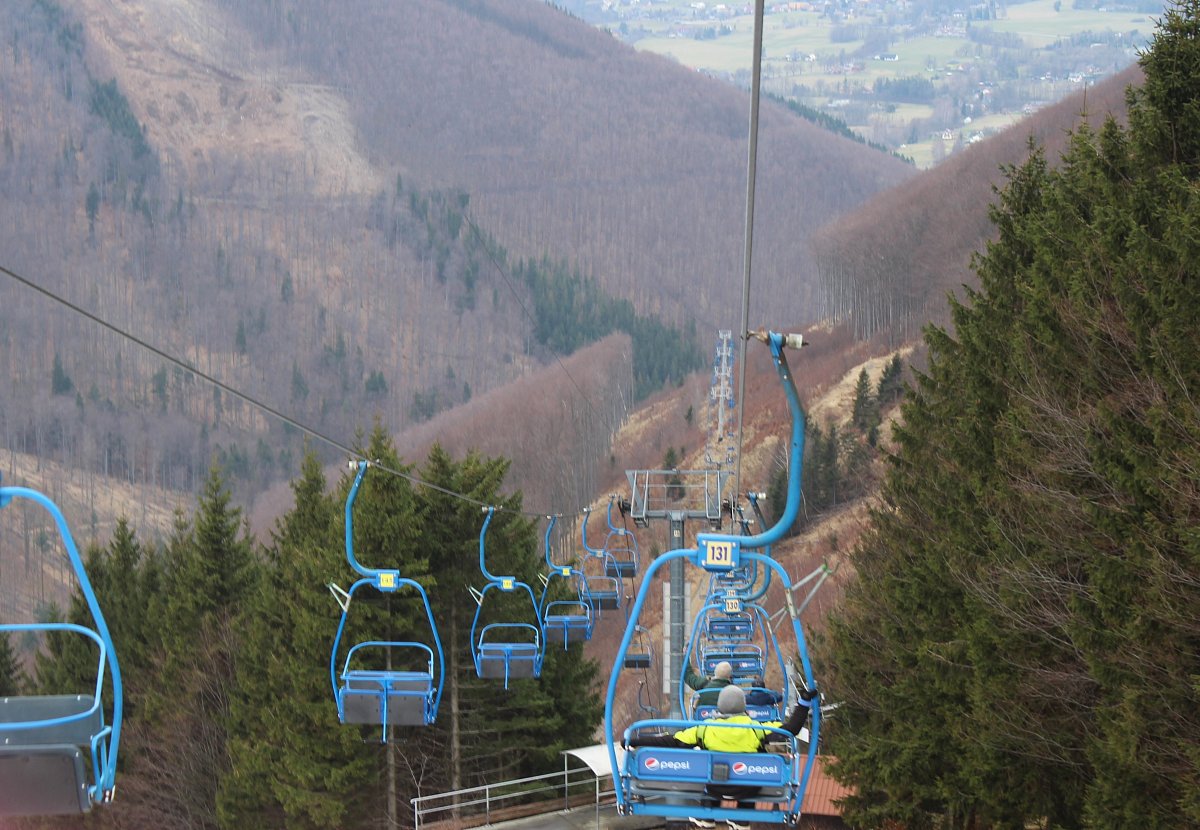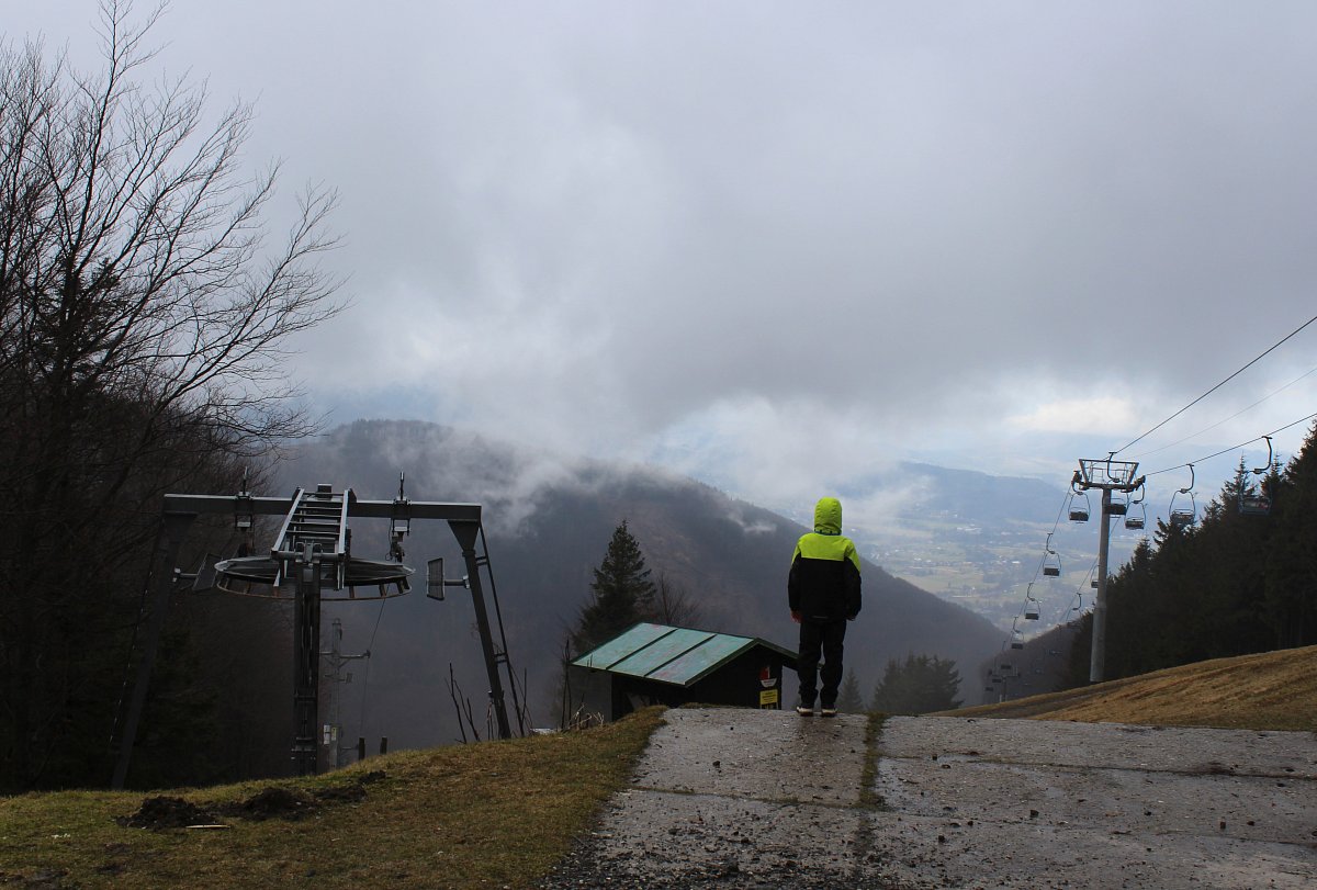 Pobyt na chatě se naplnil, a nás čekala, po vydatné snídani na krásně modrém Libušíně, naše první životní cesta sedačkovou lanovkou dolů do Trojanovic. Před jízdou jsme si ještě na chatě museli obléknout všechno to, co jsme měli sebou. Dospodu pyžamo, tepláky, mikiny, nahoru šusťáky a bundy, zkrátka všechno, aby nám nebylo na lanovce ve větru zima. Babička říkala, že za to něčím zaplatíme, ale platila ona. Až dolů u rozcestníku nám došlo, že zaplatíme 6 km pochodem podél potoka přes celé dlouhé Trojanovice, až na nádraží do Frenštátu pod Radhoštěm. Cesta vedla po rovince a nám bylo krásně teplo v těch vrstvách oblečení, které jsme měli na sobě. Vlak neměl zpoždění, a cesta do Holešova nám rychle uběhla. Před nádražím na nás čekala s autem maminka, a my jsme ji, jeden přes druhého, mohli vyprávět, co všechno jsme za ty tři báječně dny zažili.