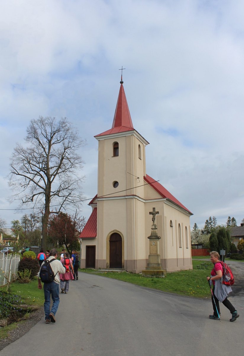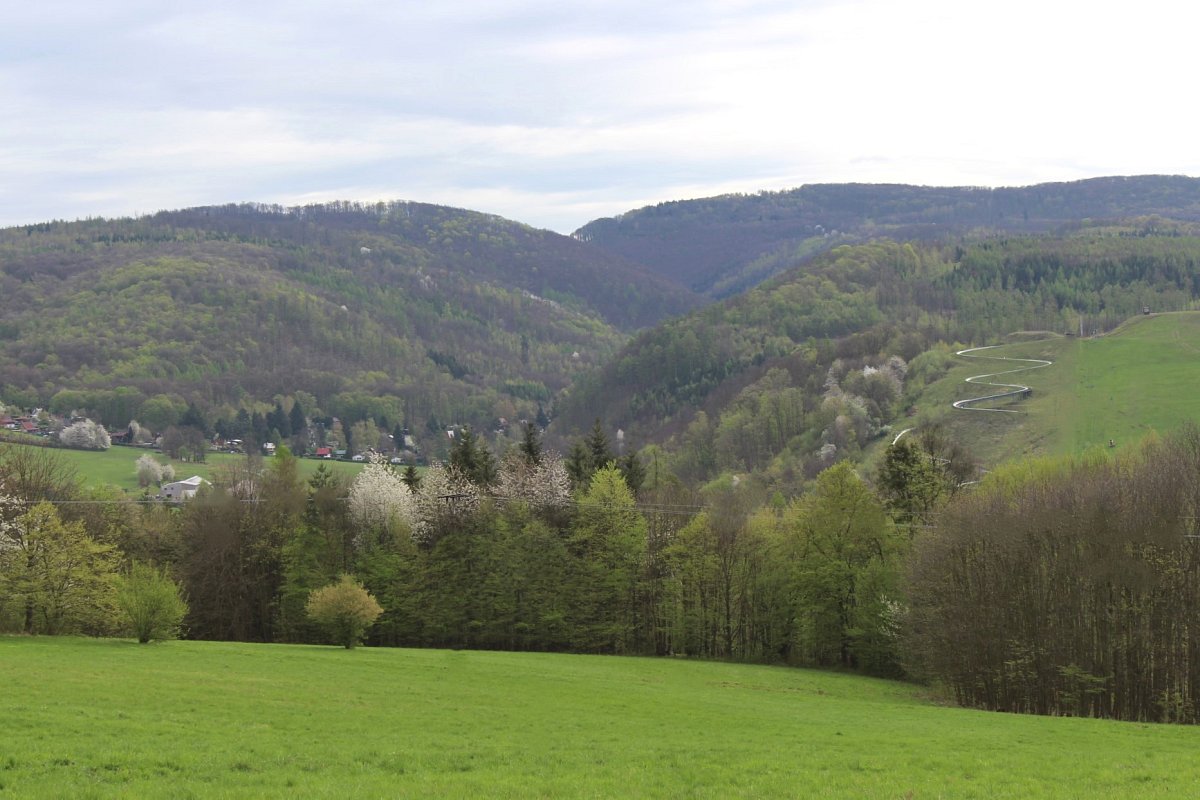 V sobotu 6. dubna jsme zrána vyrazili rychlíkem z Hulína směr Olomouc. Tam jsme přestoupili na místní lokálku, která nás dopravila do Hluboček, obce ležící v oblasti Nízkého Jeseníku v údolí řeky Bystřice. Po zelené značce jsme se vydali nad Mariánským údolím, přes obec Posluchov, směr Radíkov. Tato oblast hraničí se známým  vojenských územím Libavá. Nad obcí se tyčí statná telekomunikační věž. Pod ní je rekreační středisko s restaurací. Tam jsme se zastavili na občerstvení. Měli výborné polévky a dobře chlazené pivo a jiné nápoje. Počasí se nám vyvedlo, sluníčko se sice občas schovalo za mraky, ale teplota vzduchu byla, na toto roční období, hodně vysoká.