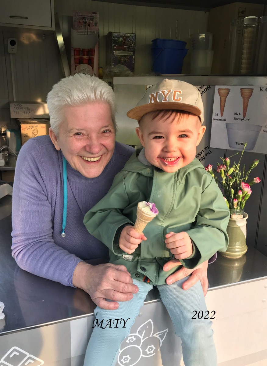 A co z toho plyne? Můj seniorský den je přesně půl roku skoro stejný rok co rok, jen ty děti nějak rostou a já si připadám užitečná. Ráno vstanu, zacvičím si, posnídám a už spěchám do stánku, kde jsem za 5 minut. Denně 9 až 11 hodin jsou pro mě opravdu neúnavné. Přesto, že je každý den stejný, tak přesto je pokaždé jiný. Je to způsobeno příjemnými lidmi a hlavně dětmi, kteří jsou pro mě příjemným zpestřením dne různými příběhy a historkami. Rádi si se mnou povídají, nosí mi pampelišky a mají radost, když přivoním a kýchnu. I malými dárečky mě překvapí. Díky Zmrzlinové stránce, kde mám už přes 560 členů, vyhlašuji soutěž pro děti i dospělé. A výhra? Tou je zmrzlina, kterou výherce dostane zdarma, ale zaplatím ji já. Také na stránce najdete příspěvky od lidí, jsou tam fotky, mám tam i video s rozhovorem v Radiu Čas. Jedu opravdu na plné obrátky a maximálně spokojená. A únava? Ta se dostaví přibližně v polovině sezóny, ale vždy až doma, když zavřu za sebou dveře.