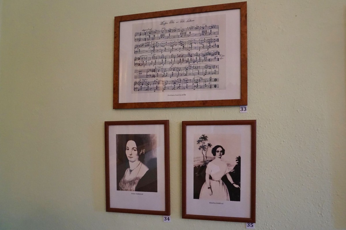 Najdeme tu obrázek jeho první lásky Luisy, manželky Kateřiny i partituru Lousiny polky.