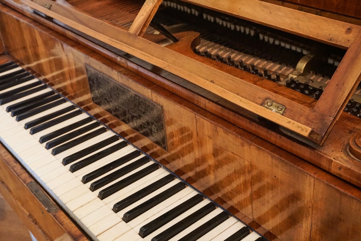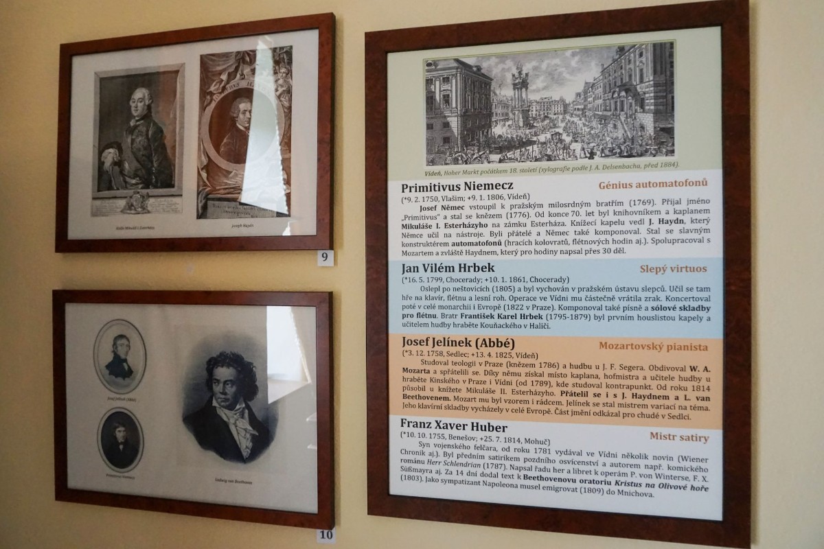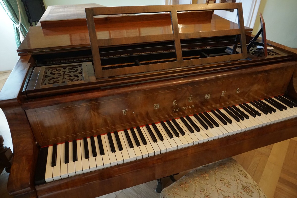 Prohlédnout si můžeme dva klavíry. Na tento hrával Smetana na zámku v blízkých Čechticích.