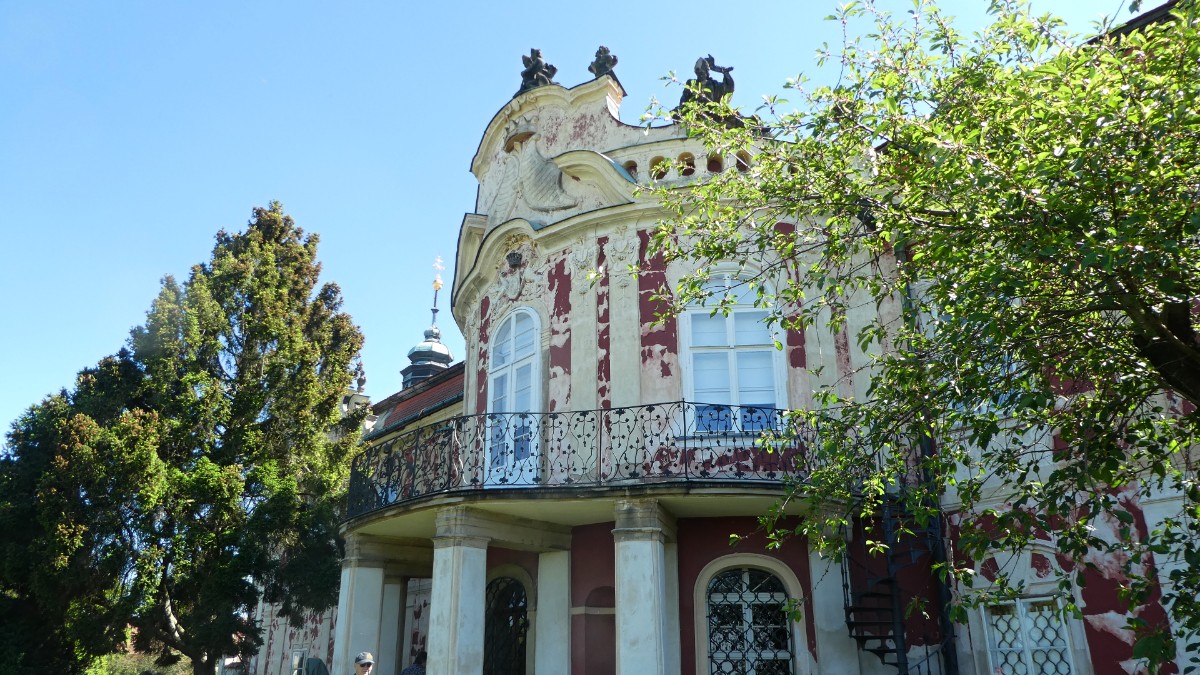 Prohlídka zámku byla zajímavá, mladý průvodce nás poutavě seznamoval s historií i současností zámku. Prohlédli jsme si také zámecký park, ale na kvetení růží je ještě čas, nehledě k tomu, že vrcholky hodně pomrzly. I tak bylo v parku příjemné posezení pod krásnými, zelenými stromy. V pokladně jsem si koupila turistickou známku, dala turka a za chvíli jsme odjeli domů. Vřele doporučuji návštěvu tohoto malého, ale krásného zámku, který je schován kousek od náměstíčka vesnice. A dokonce, kdo chce, může zde uskutečnit svatbu. Z teras zámku můžeme obdivovat opět kus Českého středohoří s jeho kopečky, chmelovými poli i zelenajícími se lány. Máme u nás tolik krásných míst.