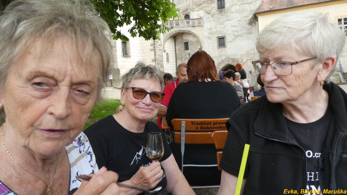 Tak jsem ve zdraví dorazila na nádraží Roztoky u Křivoklátu s kamarádkou Jiřkou. A hned jsem tam viděla milé známé tváře, včetně našeho Honzy. Sice jsem se kasala, že to dojdu, ale jak jsem byla ráda za odvoz. Dokonce nám ještě náš šéfredaktor vynesl zavazadla až do druhého poschodí. No řekněte, kdo to má tak zařízeno? Přece naše parta íčkařská, kterou tvoří převážně ženy.