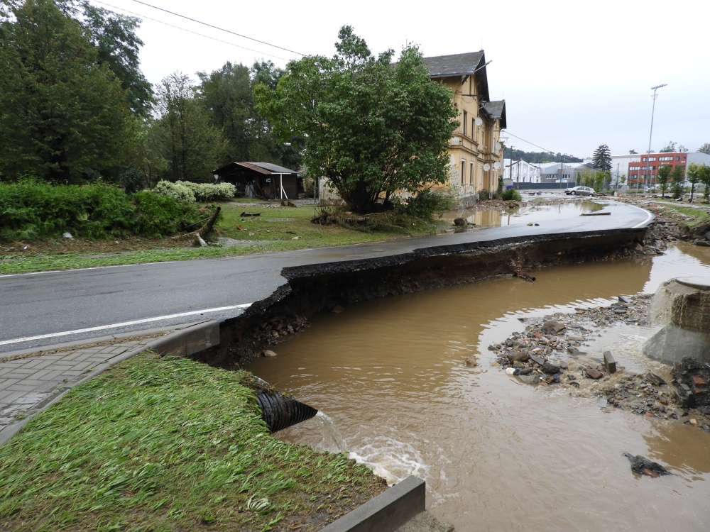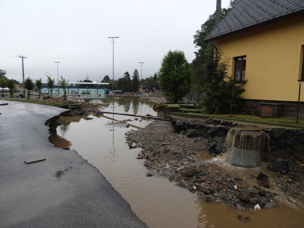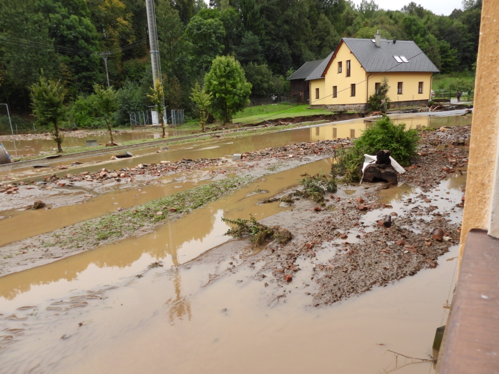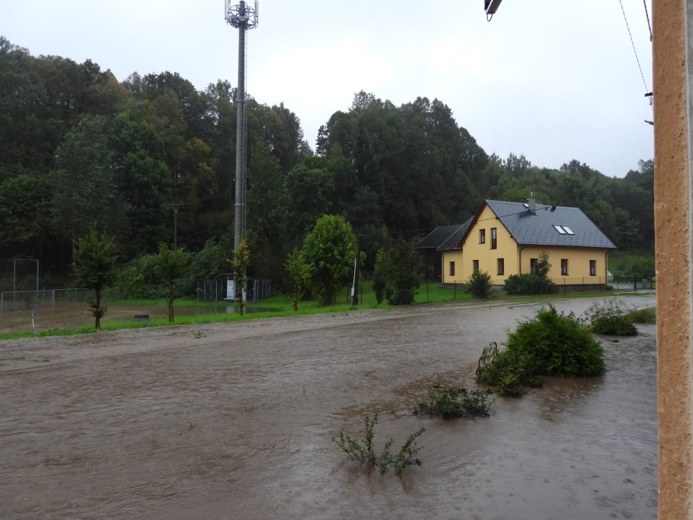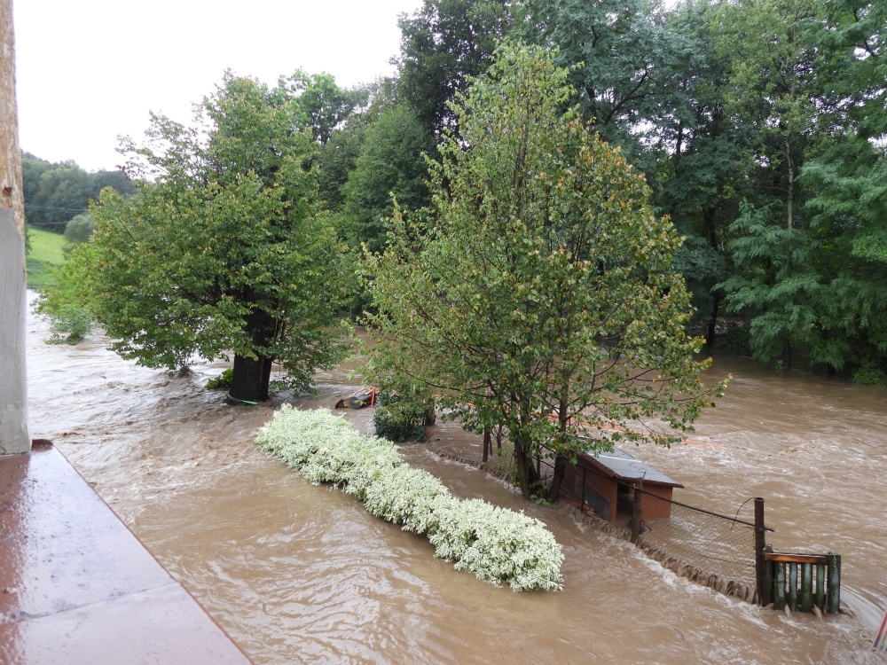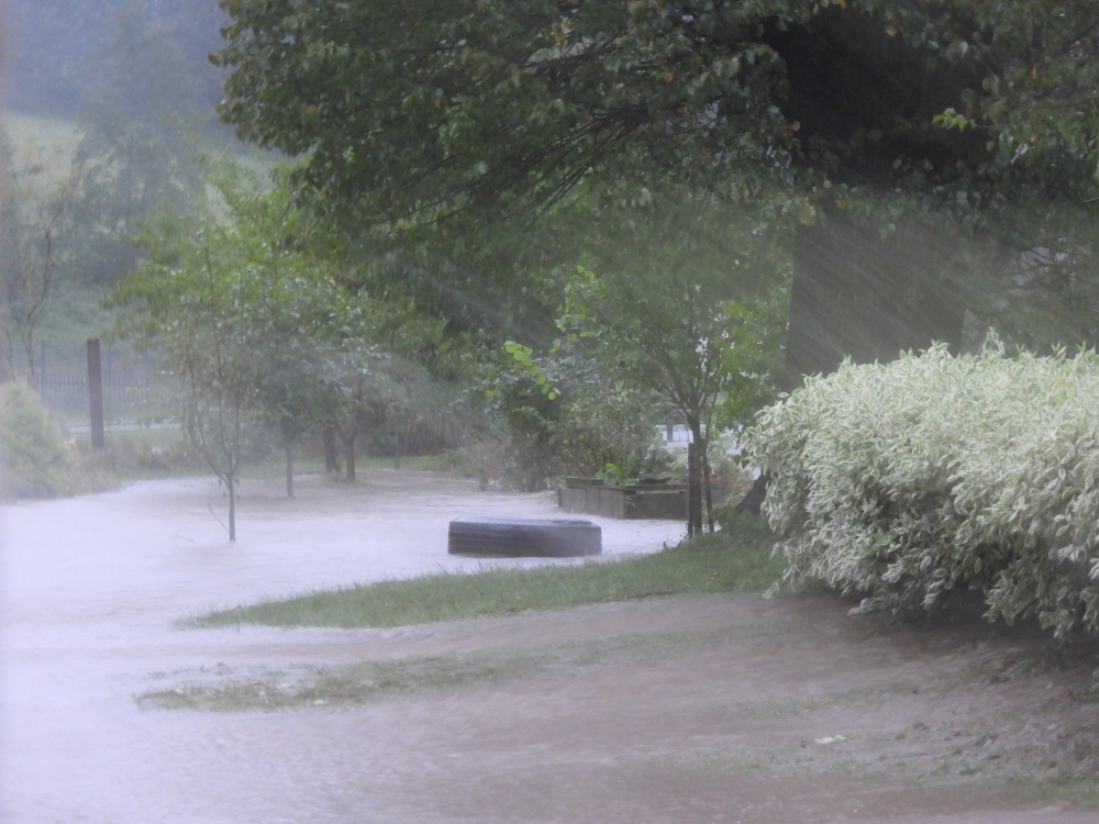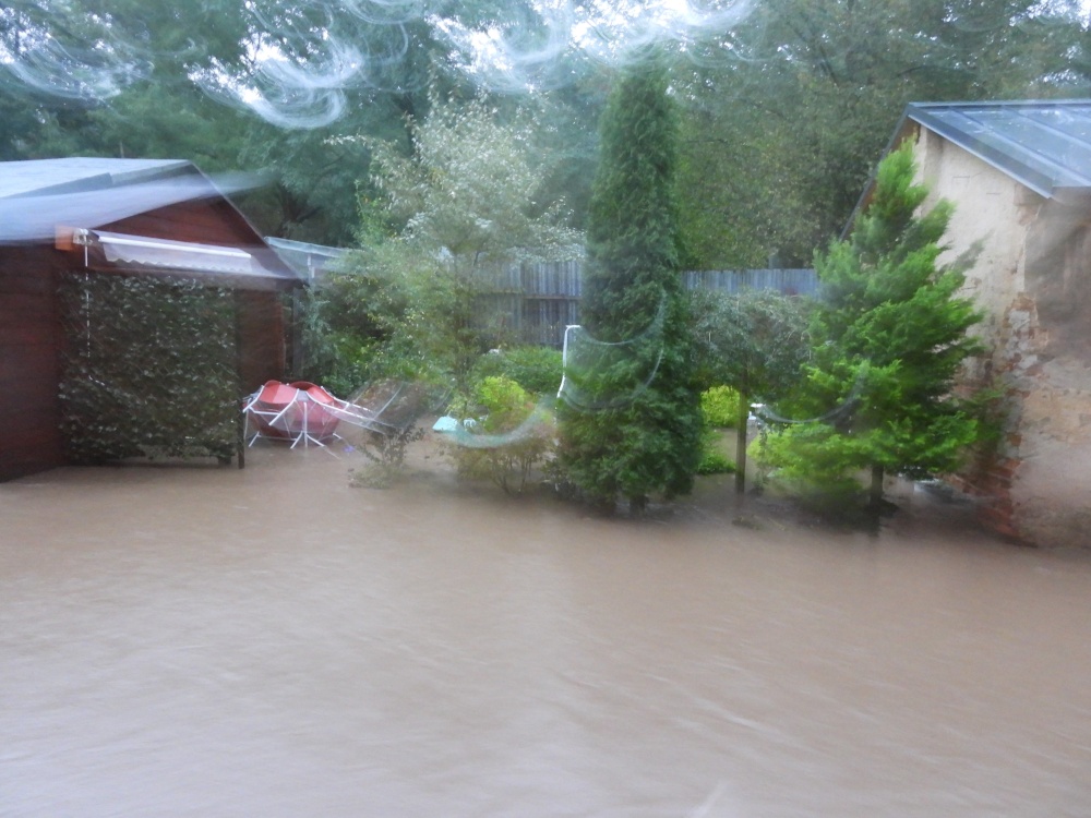 Přináším jen malé nedokonalé svědectví, fotky jsou jen z okolí našeho domu a když přestalo pršet, tak i z Hlavní ulice, ale nešlo všude stoupnout nebo jít. V neděli nás evakuovali. Trvalo dlouho, než se živel uklidnil, ale to už jsem tam nebyla.