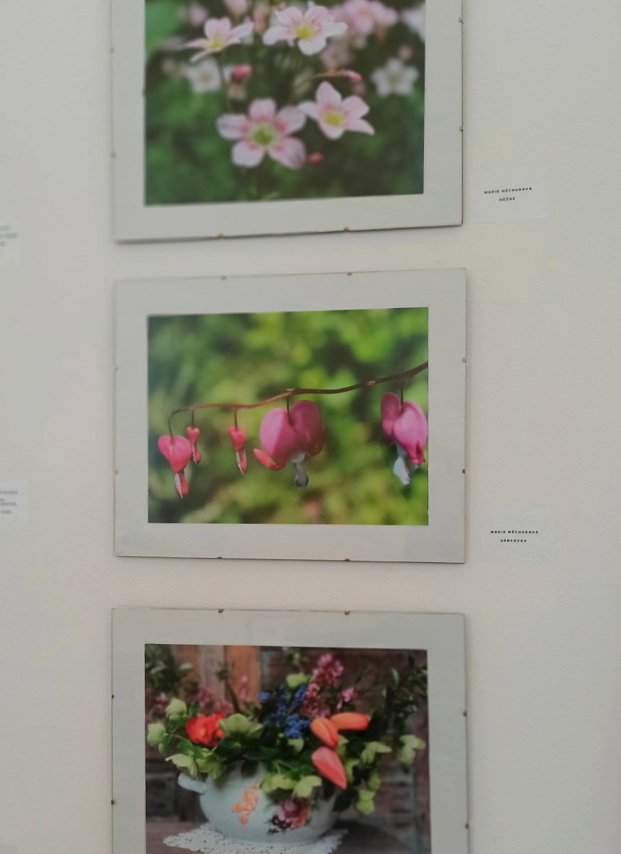 Na chodbách v prvním patře ještě probíhala výstava Letní iluze, na které vystavují amatérští autoři z Holešova a okolí každoročně své obrázky a fotografie. Já jsem na ní měla tři fotografie s květinovým motivem.