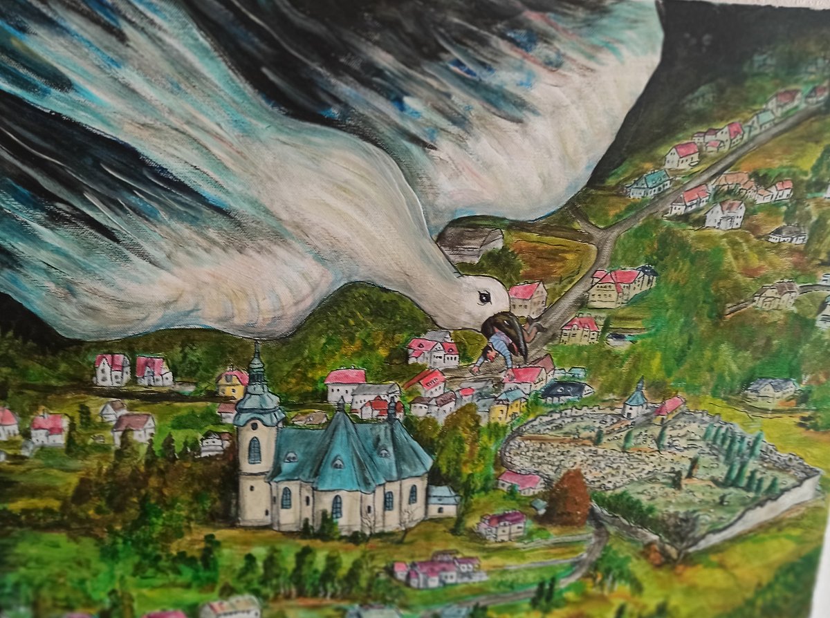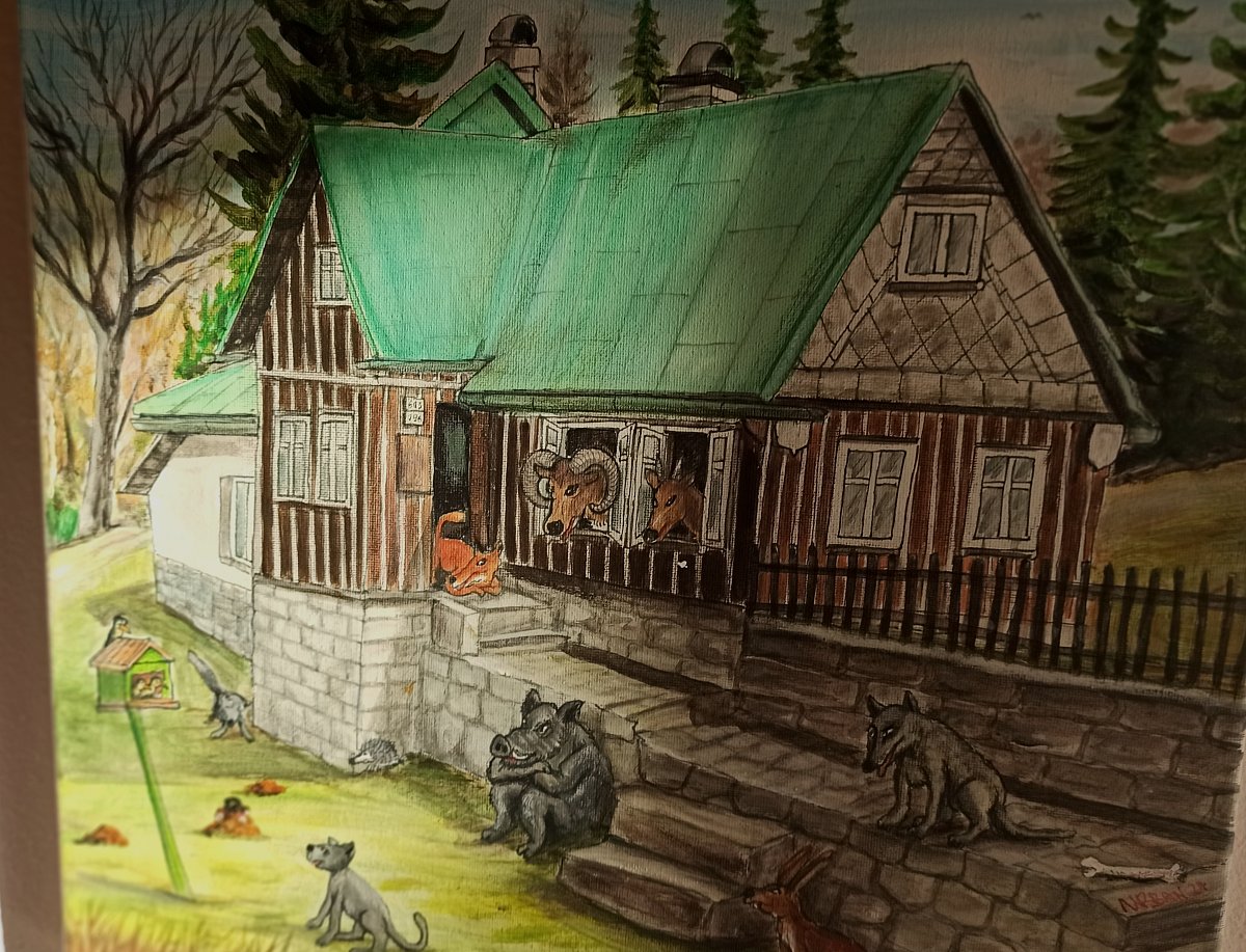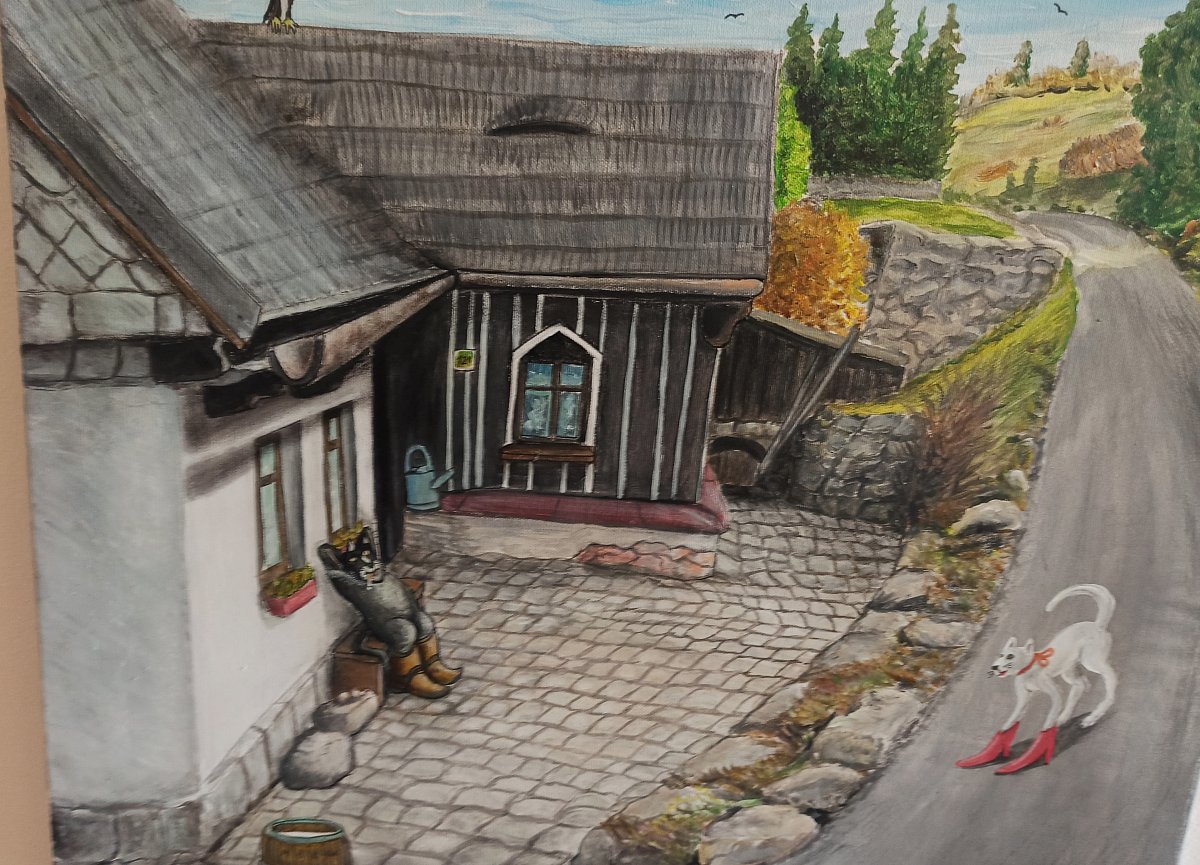 Jeho humor je na mě trošku drsný, ale obrázky se mi moc líbily, hlavně kouzelné chaloupky. Sám mistr je moc příjemný a vstřícný. S manželem si povyprávěli o malířských technikách, a mě dokonce vysekl poklonu, když prohlásil, že ze mě vyzařuje tolik pozitivní energie, kterou můžu předávat i ostatním. Proto ji posílám prostřednictvím svých fotografií všem, kteří ji v těchto dnech potřebují.