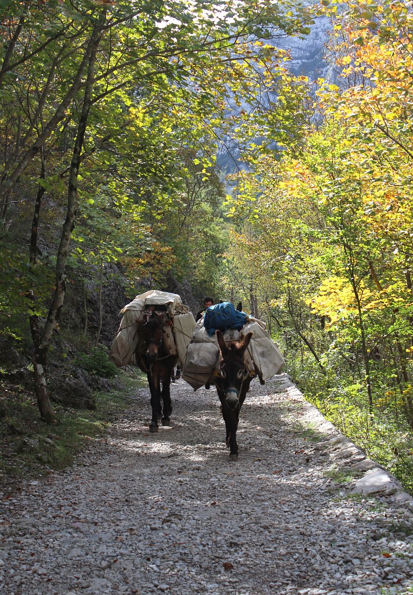 My jsme si vybrali ten druhý, ten s vodním tokem. Počasí bylo ideální na turistiku, a před námi bylo 13 km putování krásnou podzimní přírodou. Náš pan průvodce Aleš nám poskytl potřebné informace, a každý se podle svého uvážení a možností vydal na cestu. Někdo jen k první chatě Ivančev dom, na kterou vedla 1,5 hod cesta. My jsme to protáhli až na konečnou k chatě Plannarski dom v nadmořské výšce 480m. Na začátku naší cesty jsme viděli cvičné horolezecké stěny plné odvážlivců, kteří překonávali, pro nás nepřekonatelné. Návštěvníci parku byli z různých koutů Evropy i jiných světadílů. Když jsme ale dorazili k druhé chatě, byli jsme tam úplně sami, jen pan majitel, pes a my. Na cestě zpět jsme ale potkali početnou skupinu Francouzů, kteří mu jistě udělali nějakou tržbu, když už tam oslíci vynesli veliký náklad.