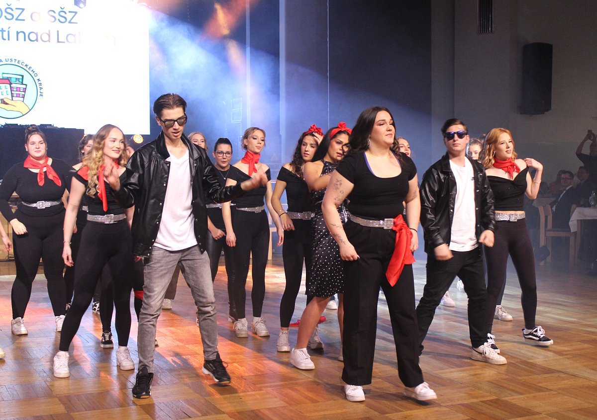 Po slavnostním zahájení předvedla každá třída secvičené taneční číslo. Třída naší vnučky zatančila na skladby z filmu Rebelové, a tomu odpovídalo i jejich oblečení.