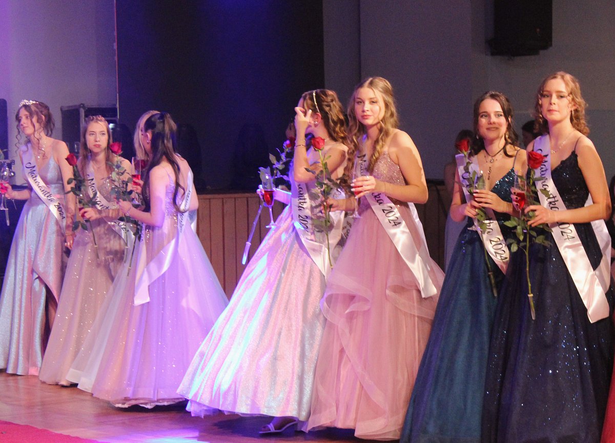 Nadešel čas na šerpování maturantů, postupně po jednotlivých třídách. Shromáždili se na jevišti a po dvojicích scházeli dolů na parket, kde jim jejich třídní učitelky navlékly šerpu, předaly kytku a připily si s nimi sklenkou sektu. Předtím se ještě na jevišti krátce prezentovali. Uklonili se, zamávali, zatočili se nebo krátce zatančili.
