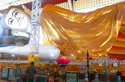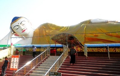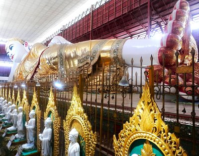 Objevování Yangonu jsme si ponechali na konec. Po dlouhém putování Mynmarem jsme si potřebovali odpočinout, takže jsme se ze skromného a komáry zamořeného penzionu na předměstí, kde jsme strávili první noc po příletu, přestěhovali do pěkného hotelu Excelsior v centru města. Nachází se v památkově chráněné budově, která byla kdysi sídlem společnosti Steel Brothers Limited. Budova byla francouzským majitelem pečlivě upravena tak, aby se v ní snoubil historický půvab s moderním vybavením. Dobře odpočinutí jsme druhý den vyrazili objevovat pamětihodnosti Yangonu. A není jich málo. Mezi nejvýznamnější památky z koloniální doby patří velkolepá budova britského Sekretariátu ve viktoriánském stylu, ve stejném stylu budova Rowe & Co, kde byl jeden z největších obchodních domů v jihovýchodní Asii, dále neoklasicistní stavba Vrchního soudu z roku 1911 a hotel Strand, který byl v roce 2008 rekonstruován a je dnes jedním z nejluxusnějších hotelů v Yangonu. Při projíždění ulicemi města lze vidět rovněž mešity a kostely. Jsme však v buddhistické zemi, takže většina památek souvisí právě s tímto náboženstvím. Chrám Buddhy Chaukhtatgyi je známý tím, že se v něm nachází jedna z největších soch ležícího Buddhy na světě. Je 65 metrů dlouhá a 16 metrů vysoká.