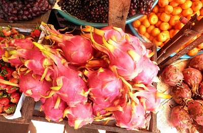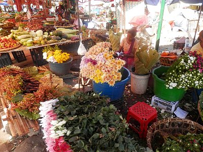 Úhledné tržiště Myoma v Naypyitaw se lišilo od běžných asijských trhů. Okamžitě nás zaujal velmi uspořádaný charakter stánků.