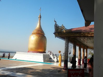 Město Bagan leží na břehu řeky Irrawaddy, která je největší řekou Myanmaru. Její povodí je hlavním producentem rýže v zemi. Chrámy a pozlacené stúpy nechybí ani na jejím břehu, kde čekají výletní lodě na turisty.