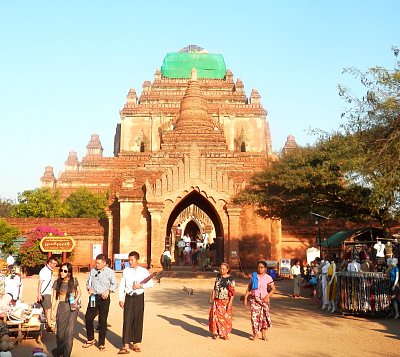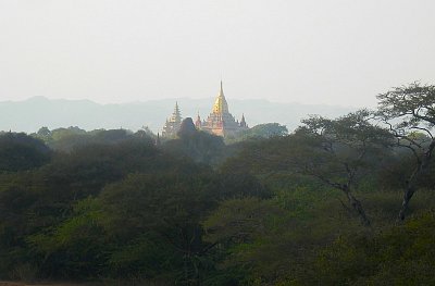 Starobylé město Bagan je proslulé množstvím buddhistických chrámů, pagod a klášterů. V době největšího rozmachu mezi 11. a 13. stoletím zde bylo postaveno více než 10 000 těchto staveb. Dnes jich stále stojí více než 2 200. Mnoho chrámů bylo zničeno přírodními katastrofami, zejména zemětřesením. V devadesátých letech dvacátého století se vláda snažila mnohé z nich obnovit, ale při některých rekonstrukcích nebyl zachován původní architektonický styl. Vidět v Baganu všechno je nemožné. V horkém dni se proto rozhodujeme zaměřit se na několik hlavních památek. Možná by bylo stylovější nechat se vozit tradičním volským potahem, ale dáváme přednost rozzářené tváři „medvídka” Suu a jeho autu s klimatizací.