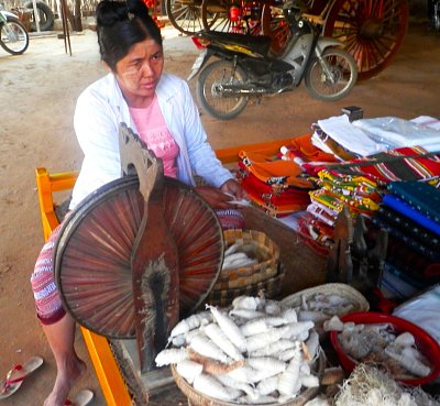 Zastavili jsme se i v dílně, kde ženy tkaly látky a šily oděvy nejen z bavlny a hedvábí, ale také z vláken lotosu.