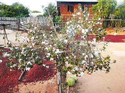 Jako všude v Myanmaru jsme i v této vesnici viděli především na tvářích žen a dětí typický bílý prášek. “Medvídek” Suu nám vysvětlil, že se jedná o tradiční kosmetickou pastu vyráběnou z rozemleté kůry, obvykle ze stromu “murraya”. V barmštině se tato pasta nazývá “thanaka” a v Myanmaru se používá již více než 2 000 let. Nanáší se na tváře, a někdy i na paže. V horkém a vlhkém podnebí pomáhá ochlazovat pokožku a působí jako přírodní opalovací krém. Má rovněž protizánětlivé, antibakteriální a protiplísňové účinky, které pomáhají předcházet akné a udržovat pokožku hladkou a zdravou. Používání krému “thanaka” je zároveň vyjádřením osobité kulturní identity Myanmaru.
