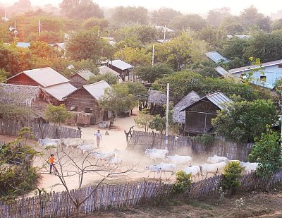 Myanmar je zemí vesnic. Kromě několika velkých měst - zejména Yangonu a Mandalaje - jsou ostatní města v podstatě velké vesnice. Domy jsou postaveny ze dřeva a bambusu, střechy jsou doškové nebo taškové. V minulosti se domy obvykle stavěly na pilotech, jejichž původním účelem byla ochrana před divokou zvěří nebo povodněmi. Tento styl přetrvává v mnoha vesnicích dodnes. Život na vesnicích je v mnoha ohledech pospolitý, čili založený na vzájemné pomoci a přerozdělování bohatství, což je dáno tradicemi a vlivem buddhismu. O to více neskutečně působí příjezd do nového hlavního města Naypyitaw, jehož výslovnost by byla oříškem i pro zkušeného lingvistu. Nejprve jsme měli dojem, že jsme omylem vjeli na letiště. Ukázalo se však, že se nejednalo o ranvej, ale o pustou dálnici s dvaceti jízdními pruhy.