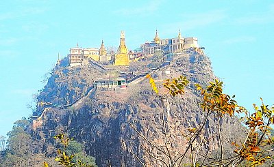 Cesta z Baganu k hoře Popa trvá něco málo přes hodinu. Naše očekávání roste s tím, jak se k ní přibližujeme. Je vidět už zdaleka.