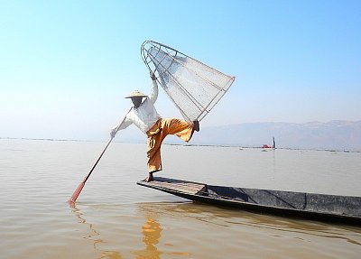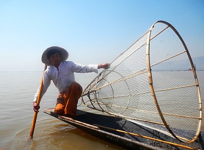 Místní rybáři jsou známí tím, že veslují nohama a k lovu používají speciální koše. Na další dvě noci jsme se přesunuli dále od břehu a měli jsme naprostý klid. Ceny v Myanmaru jsou nízké, takže jsme si mohli dovolit pronajmout malý bungalow. V jeho zahradě jsme si na dezert natrhali plody dračího ovoce. Toto lahodné ovoce neroste na stromech, ale na kaktusu Hylocereus, který má rozlehlé větve připomínající vinnou révu. Na jezeře Inle jsem měla také nepříjemnou zkušenost s jídlem v turistické restauraci. Zažívací potíže mi ovšem umožnily poznat prostředí myanmarské nemocnice, kam mne odvezl ustaraný Mister Suu. Na pohotovosti zpočátku nikdo nebyl. Po chvíli z lůžkového oddělení líně vyšel velký německý ovčák. Za ním se objevila jakási žena, kterou jsem podle oblečení považovala za uklízečku. Ukázalo se však, že se jednalo o primářku nemocnice. Byla velmi milá a dala mi několik tabletek a minerálů. Udělalo se mi lépe, takže jsme se mohli vydat na plavbu člunem po jezeře Inle. Sledovali jsme akrobatické vystoupení rybáře, který nám předvedl své umění rybolovu. Nebyli jsme na výletě organizovaném cestovní kanceláří, člun nám sehnal “medvídek” Suu, takže rybář nebyl najatý a neměl důvod dělat něco jiného než obvykle. Přesto jsme měli dojem, že se trochu předvádí.