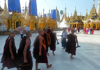 “Medvídka” Suu bychom si nejraději odvezli s sebou. Byl tvůrcem této cesty. Nečekal žádné spropitné. Když jsme ho odměnili stodolarovou bankovkou, řekl nám, že tyto peníze věnuje klášteru, ve kterém po našem odjezdu stráví jeden měsíc. V Myanmaru je běžnou tradicí, že se muži během svého života na určitou dobu stanou buddhistickými mnichy. Pobyt v klášteře jim slouží k získání duchovního vzdělání. Doba strávená v klášteře se může pohybovat od několika dnů až po několik měsíců. Poprvé mohou do kláštera vstoupit již sedmiletí chlapci, přičemž není neobvyklé, že muži znovu vstoupí do kláštera v pozdějším věku. Během pobytu v klášteře se novicové seznamují s buddhistickým učením, meditací a mnišskou disciplínou. Dodržují přísný denní režim. Ráno si chodí s miskami na rýži pro almužny, zbytek dne se modlí a studují buddhistické knihy.