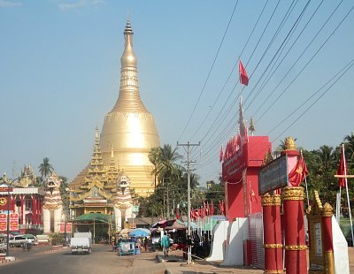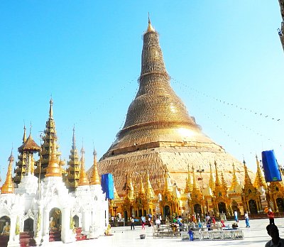 Jedná se o nejposvátnější buddhistickou pagodu v Myanmaru, protože jsou v ní uloženy relikvie čtyř reinkarnací Buddhy. Je ohromující ukázkou tradiční barmské architektury, její zlatá stúpa se tyčí do výšky 99 metrů. Všude se musí chodit naboso nebo v ponožkách. Obdivujeme všemi barvami hrající svatyně, shromažďovací sály, kláštery, čtyři monumentální schodiště a různé další menší stavby a pavilony. Celý komplex zabírá téměř 50 hektarů a je významným náboženským a kulturním místem. Naprostá většina návštěvníků jsou místní buddhisté. Zbožní mniši, zvědavé děti a modlící se věřící. Nezapomenutelné scény na konci úžasné cesty!