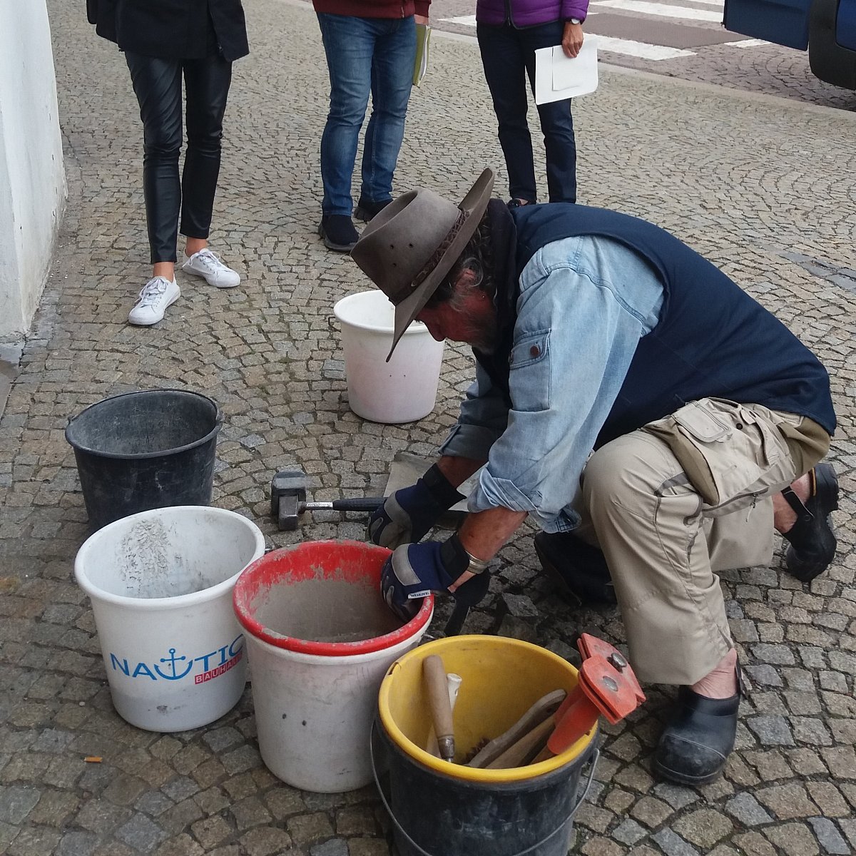 (Kameny zmizelých se nazývají také Stolpersteine= kameny, o které se zakopává)