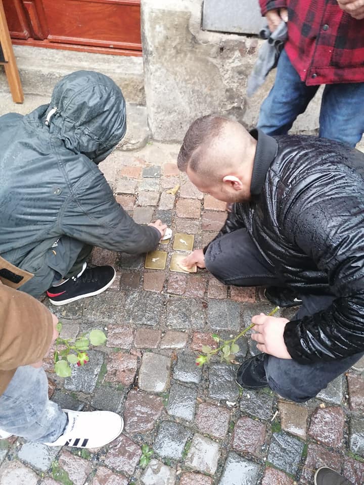 „Babičko, proč čistíme ty destičky,“ Ptaly se děti. A tak jsem jim to vysvětlila takto: „Když byla před 80 lety válka, a to i já vím jen z vyprávění, stalo se strašlivé zlo. Určitou skupinu lidí, byli to Židé, tedy lidi, kteří měli jinou víru nebo měli své předky v národě Židů, tak tedy tuto skupinu lidí chtěli úplně vyhladit ze světa. Ti lidé nebyli vojáci. Byli to tátové, mámy, babičky, dědečkové i děti. Všechny je odváželi pryč do takových táborů a tam je zabili. Bylo jich moc, proto nemají hroby, jejich popel někde zmizel. Bylo to takové zlo, že už ho nikdy nechceme. Jeden pán v Německu, jmenuje se Günter Demnig, začal na místa, kde Židé bydleli, dávat dlažební kostky s mosaznými destičkami. A my je čistíme místo toho, abychom na hrob dali květinu.“