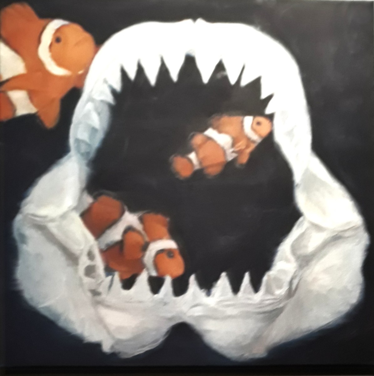 Několik ukázek obrazů z výstavy je připojeno za článkem. Zajímavé jsou ukázky prvních dvou obrazů, které jsou namalovány akrylem a pískem na plátně.