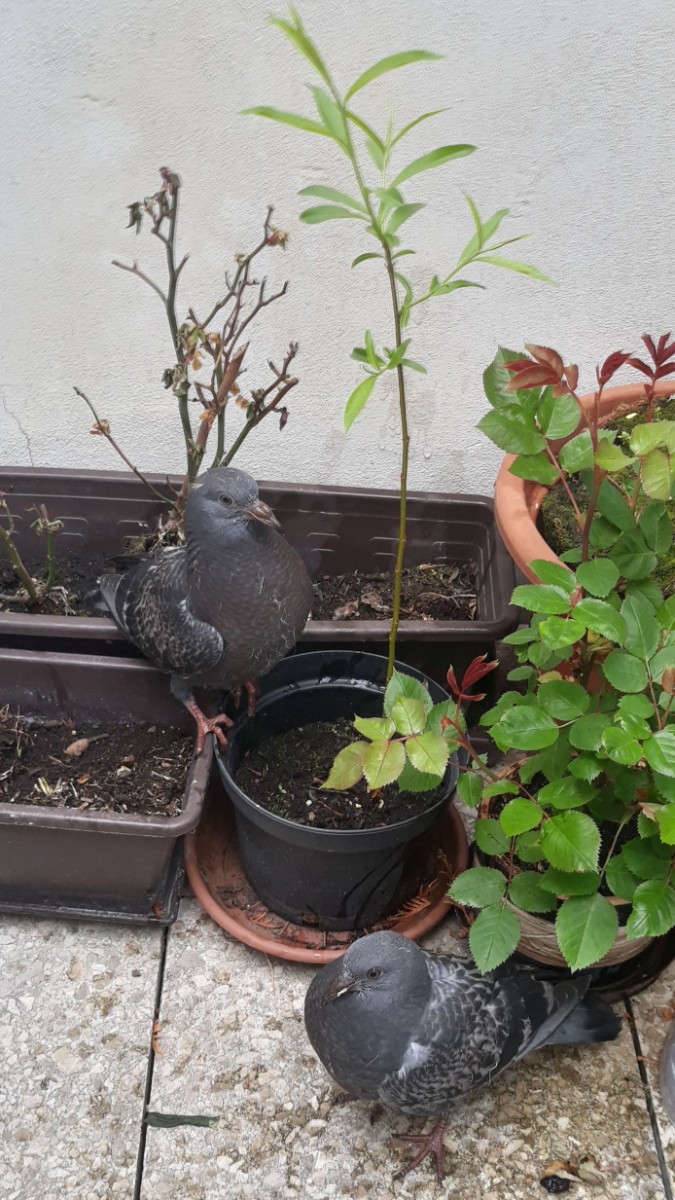 Následující den po odletu holubí rodinky a před nadcházejícími velikonocemi jsem se pustil do důkladného úklidu nepořádku po holubech na terase a po přezimování na ni vynesl truhlíky a květináče s rostlinami, abych ji přeměnil na minizahrádku a relaxační prostor tak jako každý rok. Holubi i holoubata měli ještě pár dnů tendenci se na terasu vracet, resp. na ni alespoň ze střechy koukat, ale moje důsledné vyhánění a jiný vjem změněné terasy je zjevně definitivně od podobných pokusů odradilo. A tak skončil měsíční příběh sledování vývoje holoubat od vylíhnutí až po jejich odlet. Vše proběhlo opravdu tak, jak bylo popsáno v prvním odkazu za článkem.