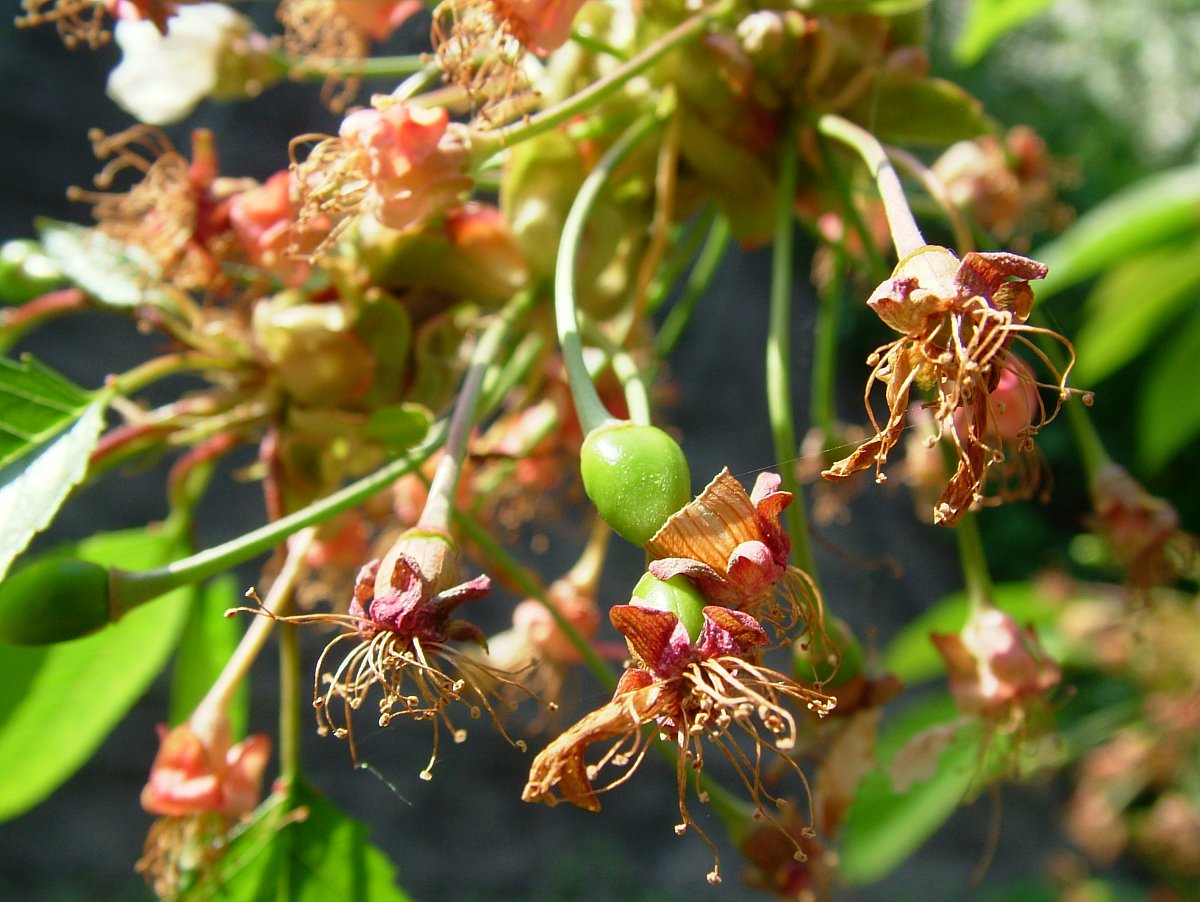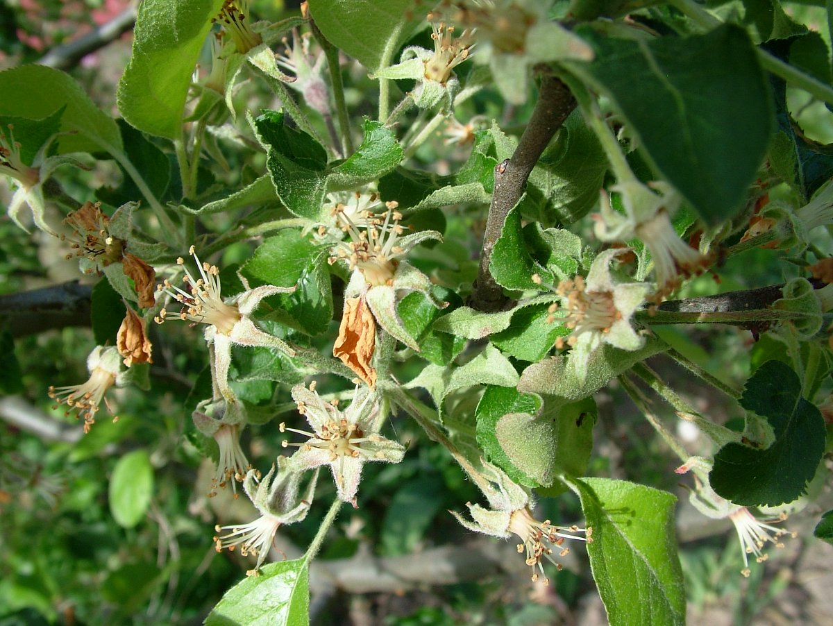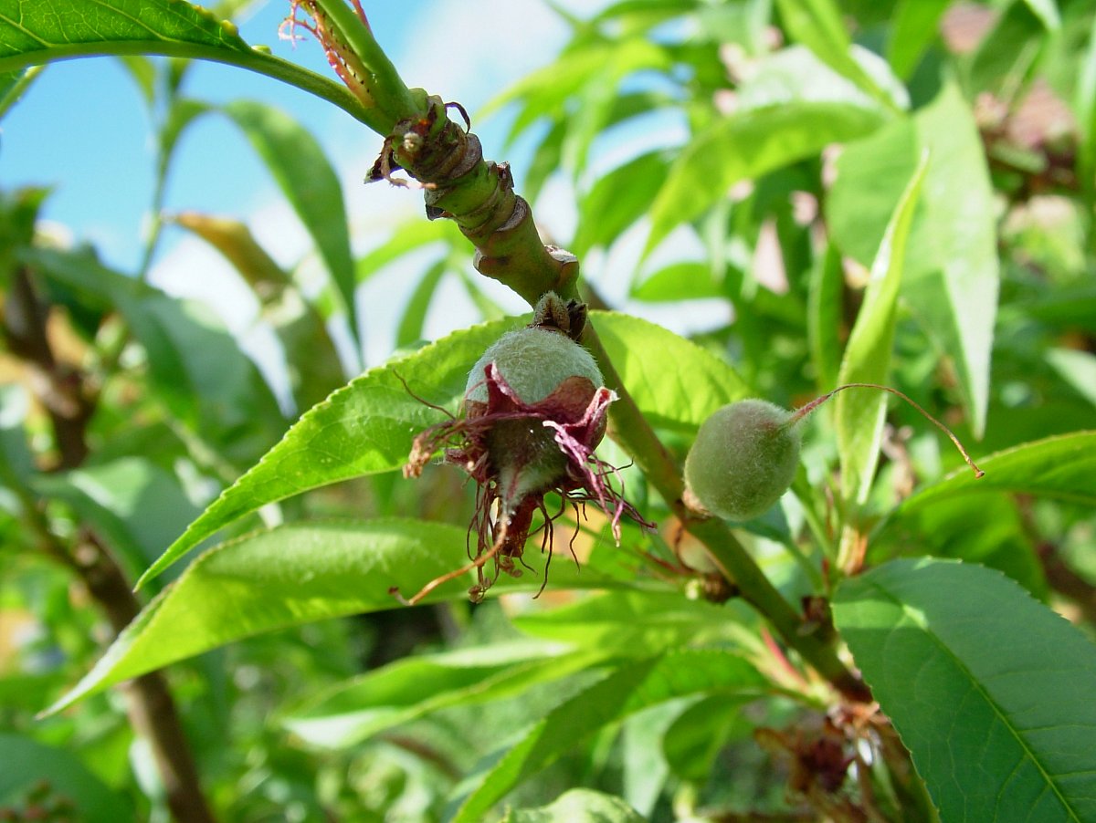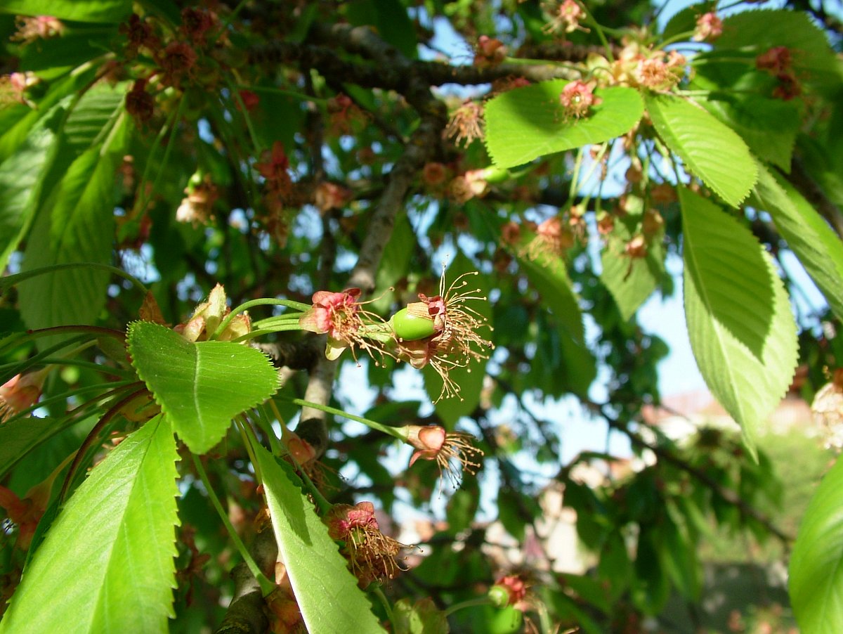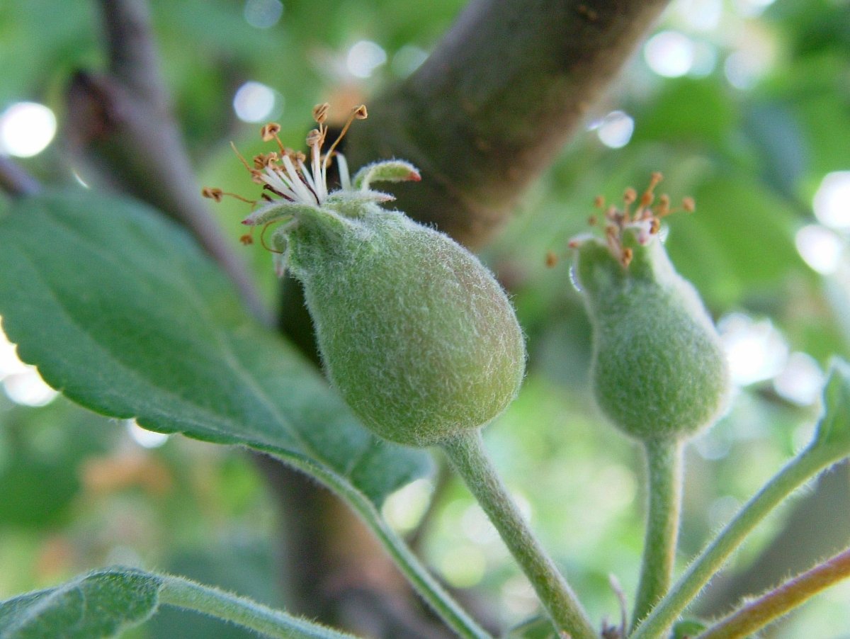 Nyní, začátkem května, otevírají se ještě poslední kvítky jabloní, zatímco na jiných stromcích se již tvoří maličké plody. Ty jsou teď ve fázi, kdy mají na sobě suché zbytky částí květů, které už svoji úlohu splnily.
