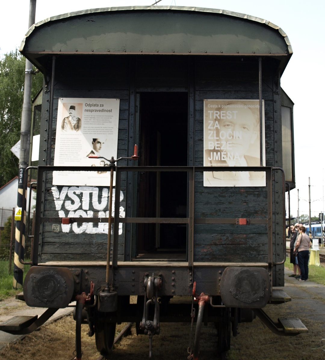Dobová stylizace téměř osmdesát let starých vagónů nás vrací o více než osmdesát let zpět, neboť v podobných byly transportovány do koncentračních táborů oběti holocaustu.