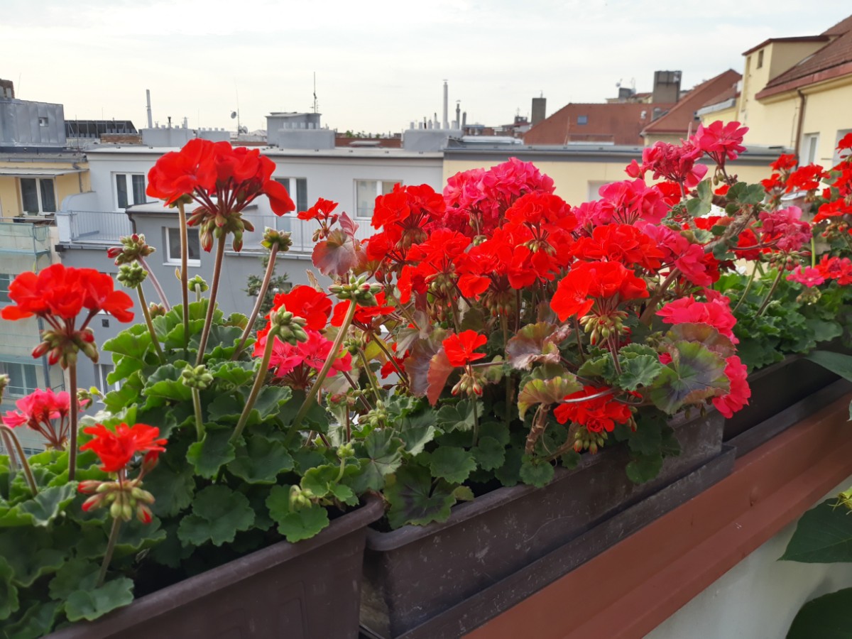 V některých předchozích příspěvcích jsem mimo jiné uvedl, že k mému bytu v půdní vestavbě patří i menší terasa. Naposledy jsem se o terase zmiňoval letos na začátku května, kdy jsem na ní odchoval v průběhu března a dubna dvě holoubata – viz www.i60.cz/clanek/detail/36433/jak-jsem-odchoval-dve-holoubata (článek má přes 11000 přečtení). Poté, co holoubata s rodiči definitivně odlétla, až na vrbičku prakticky holou terasu jsem z gruntu vyčistil a provedl jsem výsadbu a vynesení zazimovaných rostlin. Zejména muškáty byly po zimě ve velmi žalostném stavu a ani jsem nevěřil, že se vzpamatují.
