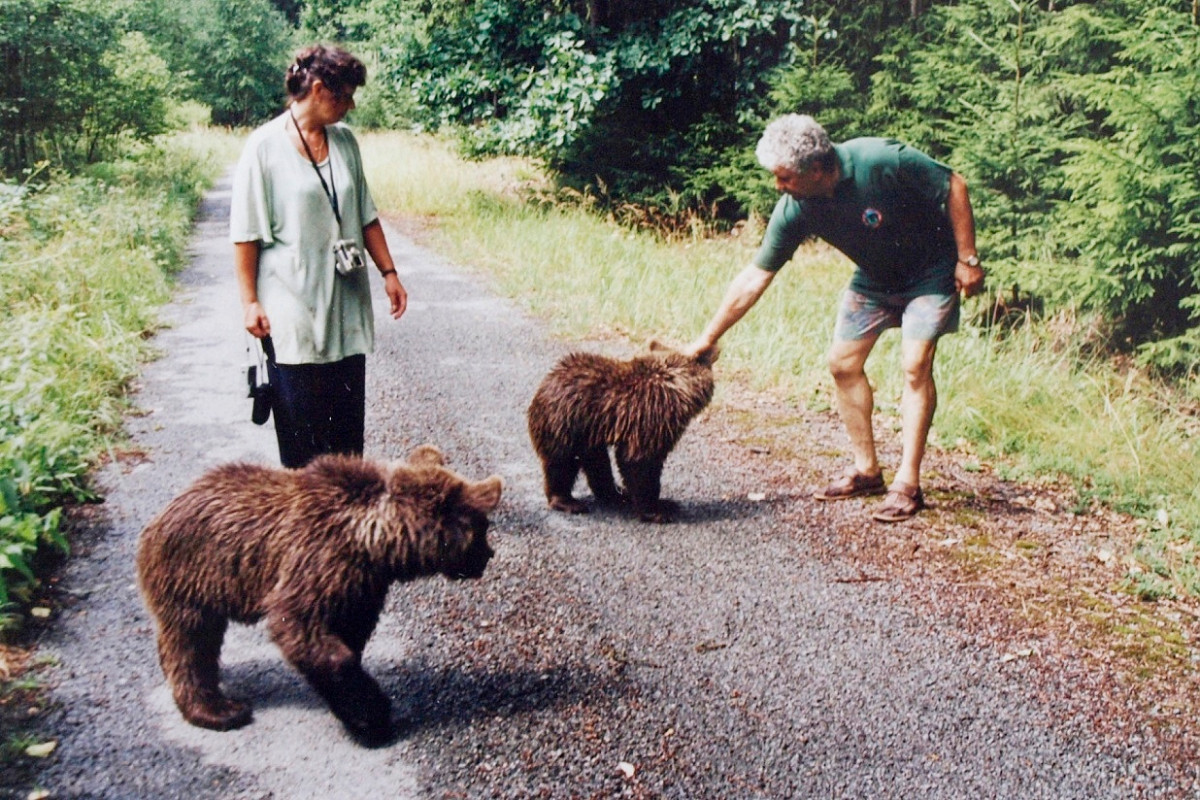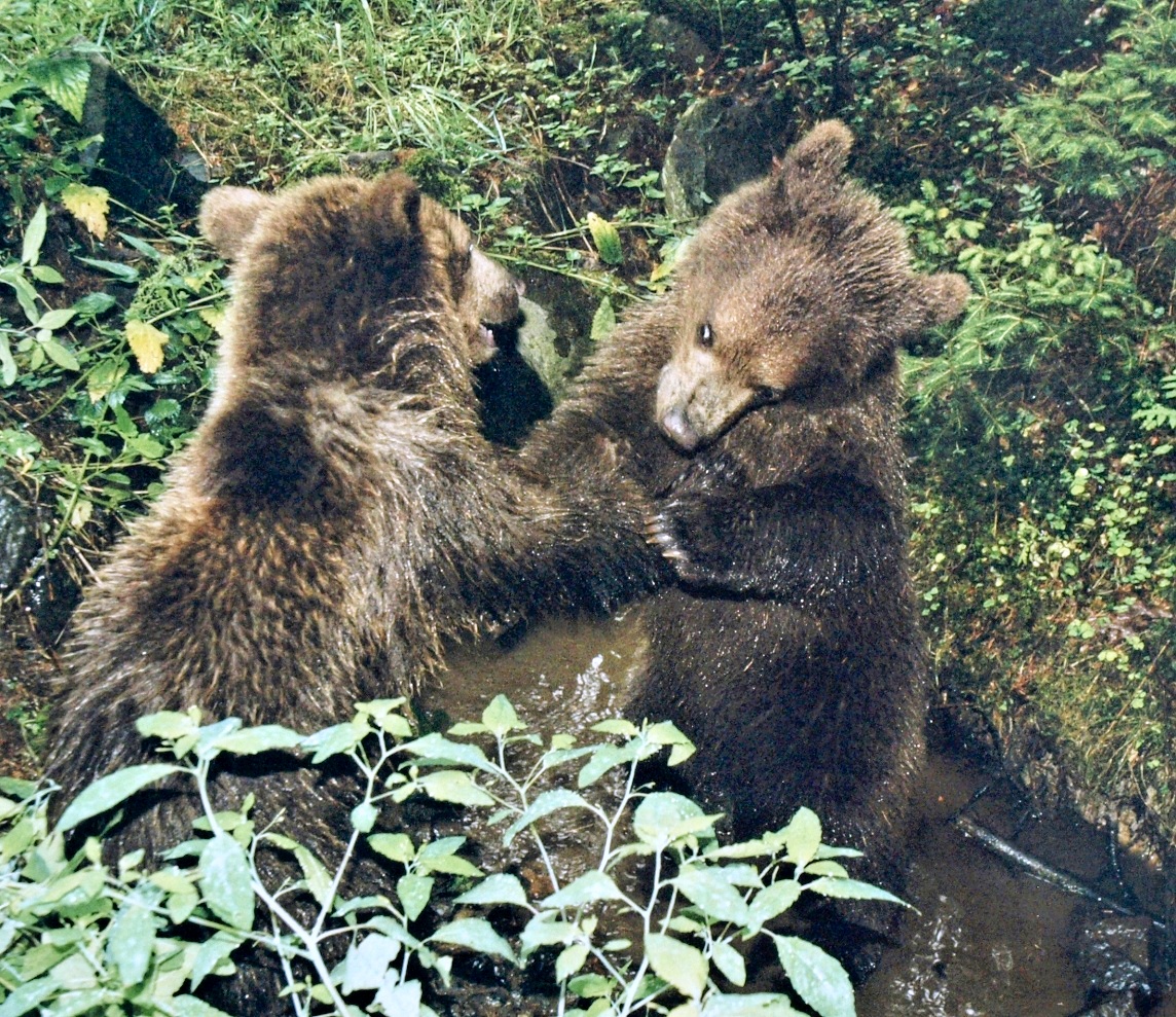 Samostatnou kapitolou bylo snídaňové krmení obou medvíďat a následná několikahodinová procházka v okolních lesích, během níž si medvídci načesali maliny, povalili a zlikvidovali několik pařezů, vylezli na nespočet stromů, vymáchali se v několika strouhách a potůčcích, několikrát se poprali, nemluvě o tom, že častým objektem jejich zájmu jsme byli i my, jejich člověčí průvodci. Více v galerii.