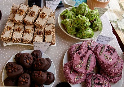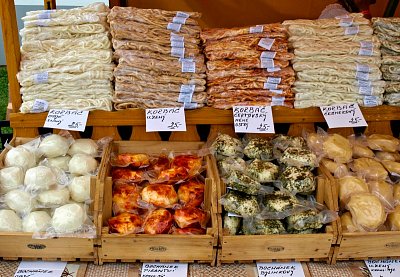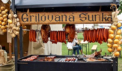 Bez grilovaných klobásek se obejdu, ale několik dobrých sýrů jsem si koupila. Přestože nejsem vegetarián ani vegan, neodolala jsem ani "zdravému" mlsání. Naprostou rumovou "bombou" byly ořechové řezy (vlevo nahoře). To vše ale až "na doma", na výborný oběd jsem si zašla do proslulé Holašovické hospody, kterou mohu jen doporučit (foto v galerii).