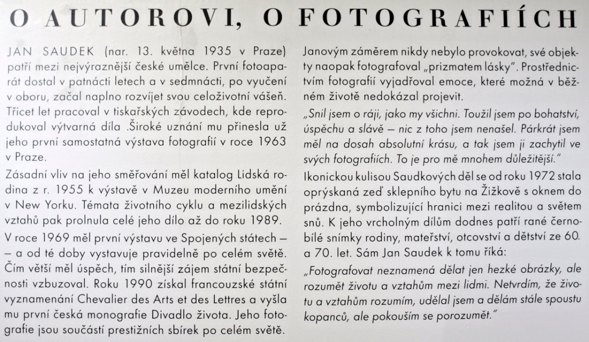 Další z výstav, uspořádaných u příležitosti 90. narozenin Jana Saudka, můžete navštívit až do února příštího roku v Central Gallery na Staroměstském náměstí v Praze.