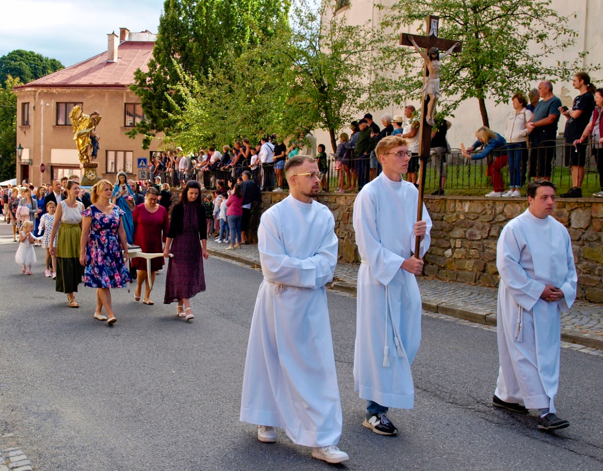 Oba průvody společně projdou centrem města přes náměstí Svobody, a kolem kostela sv. Jakuba Většího, pravoslavné kaple sv. Rostislava a bývalého paulánského kláštera se společně vydají zpět k zámku.