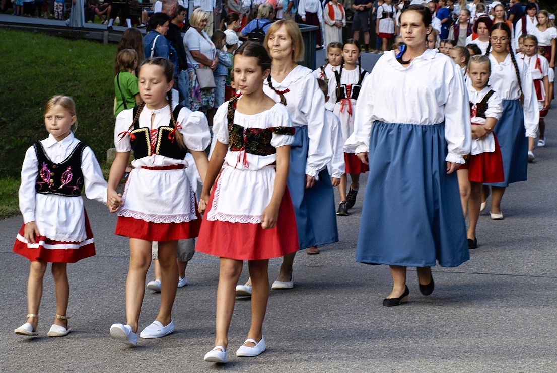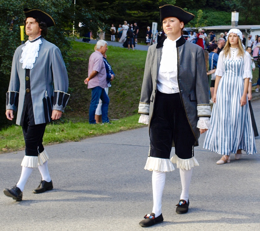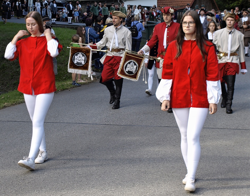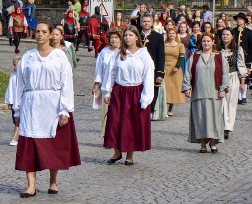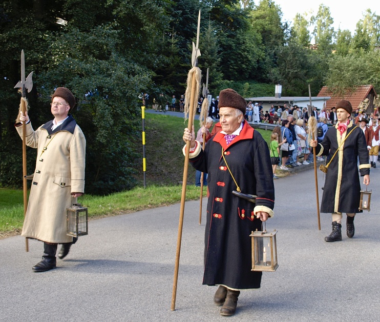 Jako první vychází ceremoniář následovaný zbrojnoši. Poté učitelský s písařem, čtyři ponocní a městští policajti. Pod cechovními vlajkami nastupuji jednotliví zástupci řemesel, mlynář, kominíci, včelaři a další. Všichni mají vážné zachmuřené tváře. A již se objevují první venkovské děti se svými matkami, následované měšťany se svými rodinami.