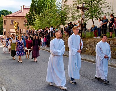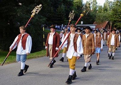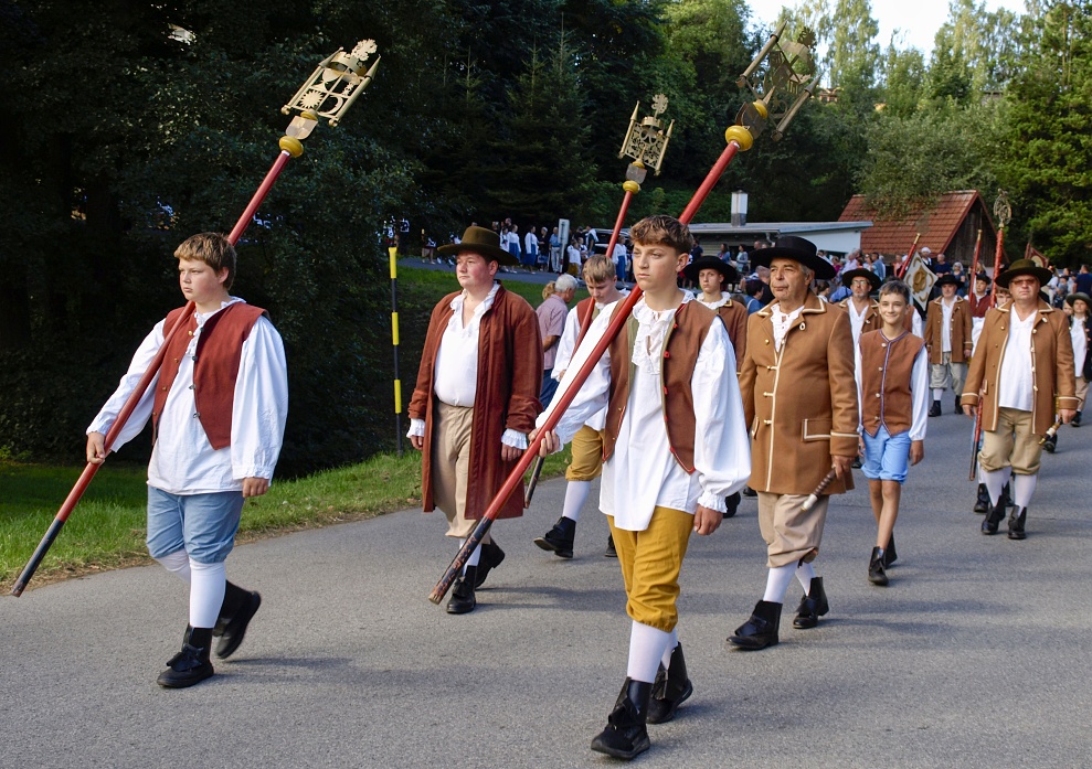 Průvodu se tehdy účastnilo duchovenstvo, družičky, školní děti, starosta s několika členy zastupitelstva, představitelé různých řemesel, zástupci cechů, selský lid a další.