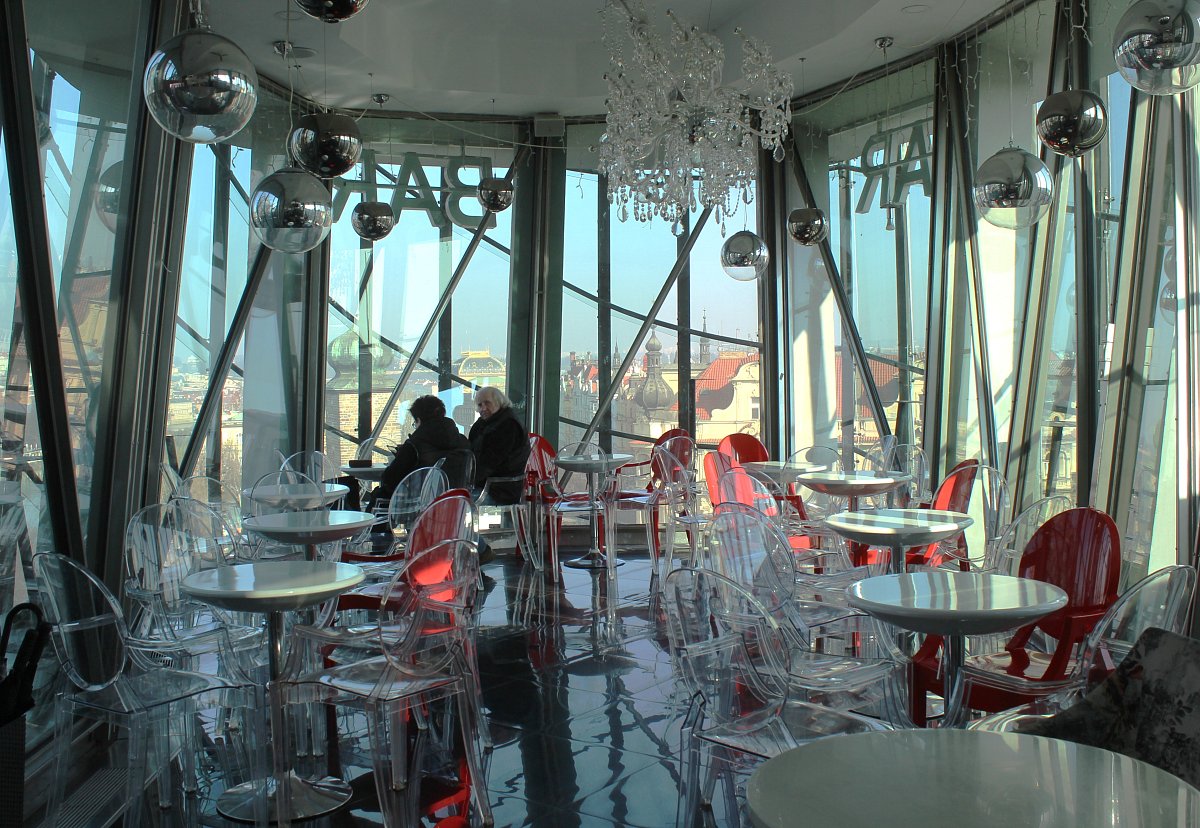 Druhý den po vydatné hotelové snídani jsme spěchali na schůzku s Danielou u Tančícího domu. Tento hotel na Rašínově nábřeží, od architeků Franka Gehryho a Vlada Miluniče, byl dostavěn v roce 1996. Tato neobvyklá stavba rozdělila veřejnost na dva tábory. Nám se tam ale hodně líbilo. Z terasy byly hezké pohledy na Vltavu i na Staré Město. Na posezení v zajímavé kavárničce nebo restauraci už jsme ale neměli čas. Příště to musíme napravit.
