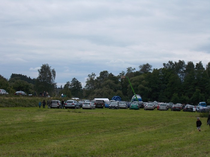 Plavidla startují na splavu v Okrouhlici pod zámkem. Letos byl start obzvlášť složitý, protože to nejdůležitější - vody - bylo opravdu jen poskrovnu. Plavidla různých velikostí a všelijakých tvarů se pokusila vyplout, ale všechna jsou postrkovaná posádkou. Ač není moc teplo, přesto jsou za chvilku všechna plavidla na cestě. Diváků přihlížejících z břehů je hodně a snaží se různými pokřiky povzbudit soutěžící. Je samozřejmostí, že jim soutěžící odpovídají patřičnými průpovídkami.